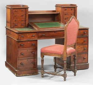 Scrivania inglese in legno di mogano con sedia