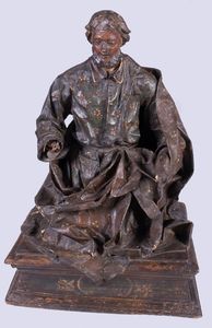 Scultura in cartapesta policroma, cm. 60 h. Mancanze.