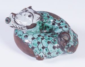 Fiaschetta zoomorfa in terracotta policroma