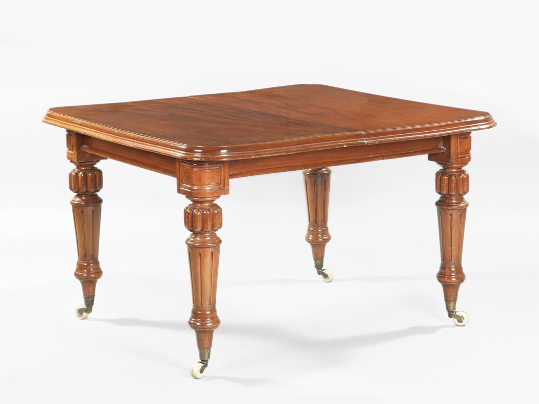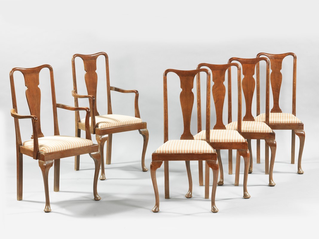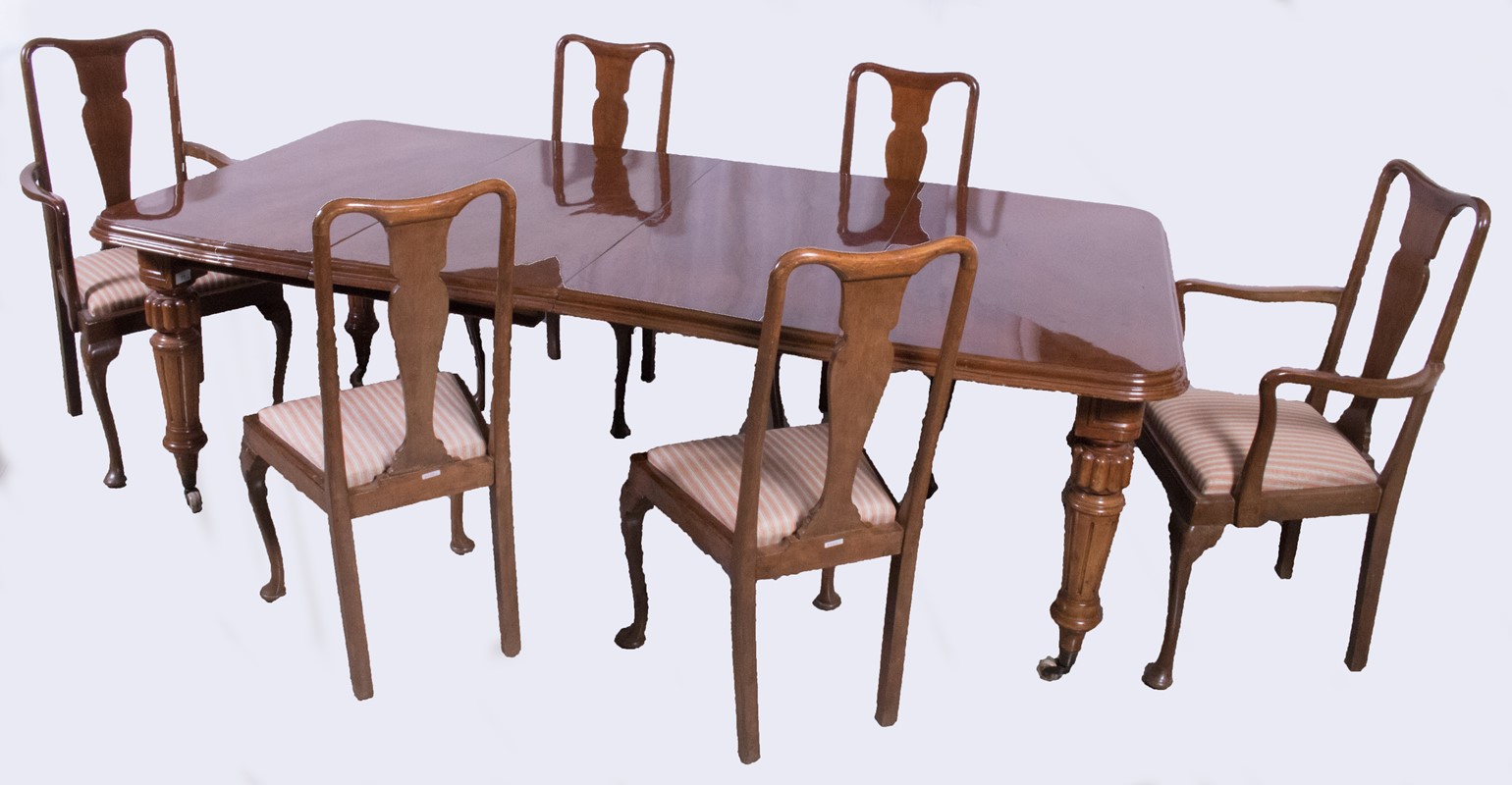 Un tavolo, due poltrone e quattro sedie in legno di mogano