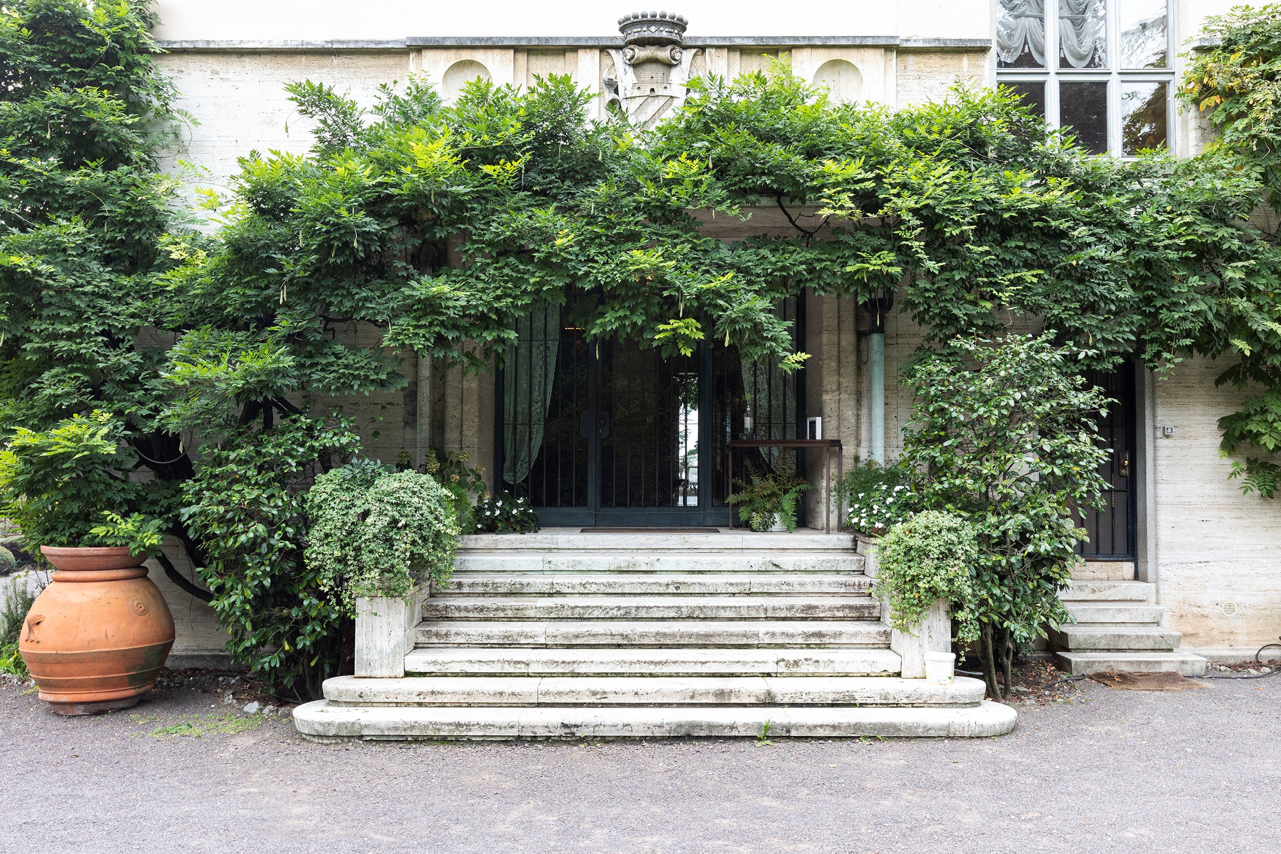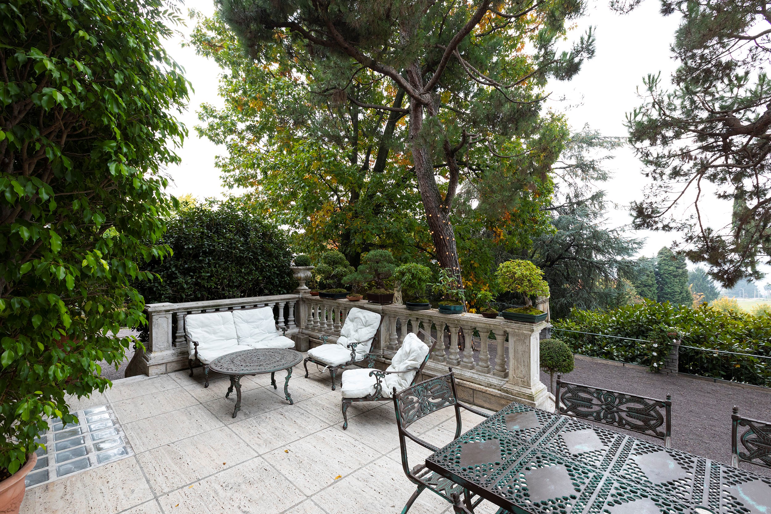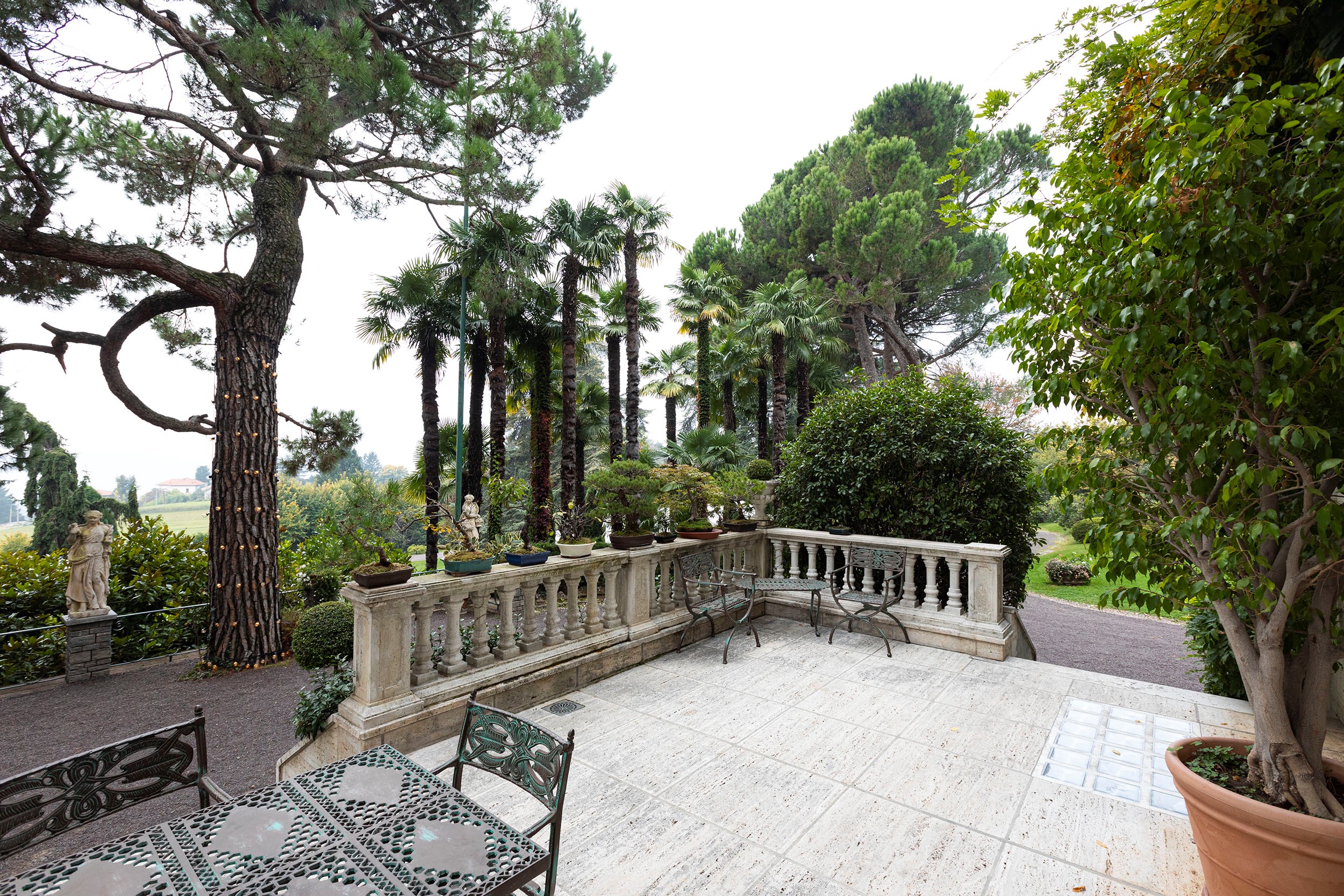 Complessivamente la proprietà si sviluppa su 1890 mq coperti, 460 mq di terrazzi, serra, piscina e 24.000 mq di giardino.