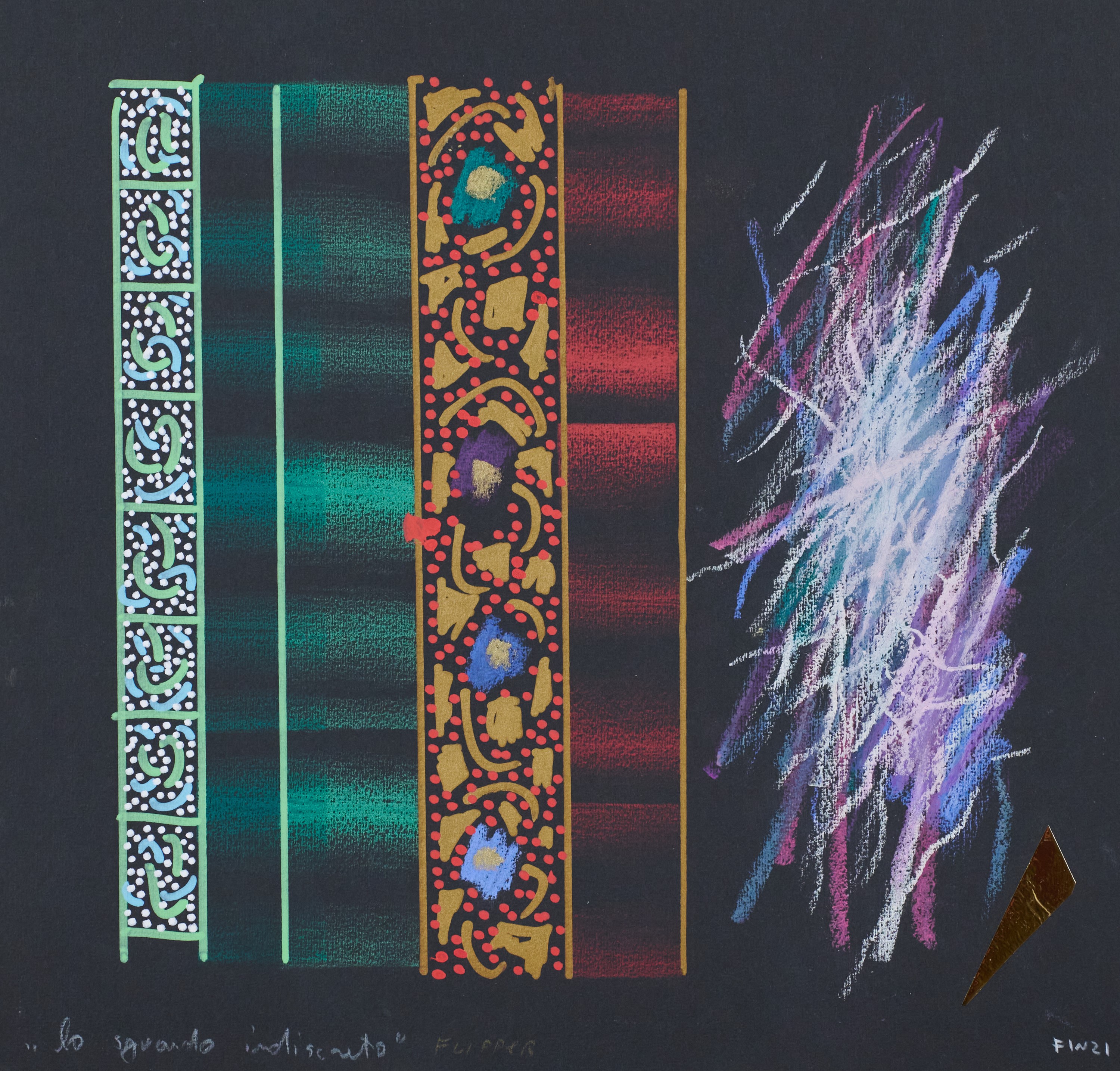 Tecnica mista e collage su cartoncino nero, cm. 33x35