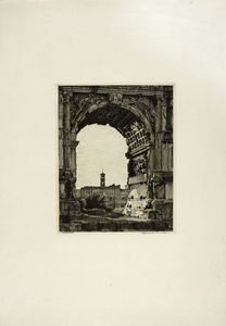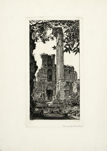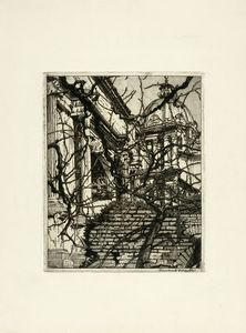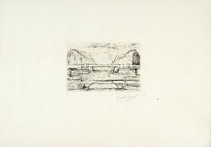 Acquaforte. mm 410x290. Firmata a matita in basso a destra e numerata in basso a sinistra. Es. 64/70.