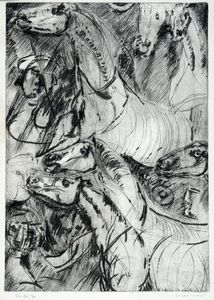 Stampa colorata a tempera. mm 410x305. Foglio: mm 585x505. Firma in lastra in basso a destra. Al verso iscriztti [..]