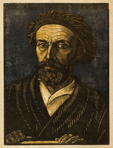1915. Xilografia. mm 287x195. Foglio: mm 497x345. Firma in basso al centro e controfirma stampigliata al verso [..]