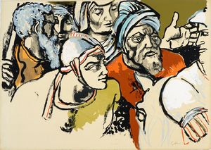 Litografia su carta a doppia filigrana. mm 460x652. Firma e tiratura a matita in basso a destra. Opera stampata [..]