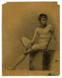 Matita nera su carta vergellata preparata in grigio-azzurro. mm 535x390. In basso "N 16 Collezione Santo [..]