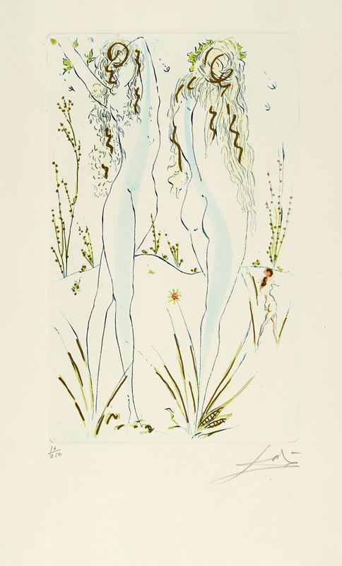 Acquaforte a colori. mm 395x243. Foglio: mm 700x500. Firmata a matita in basso a destra e numerata in basso a sinistra. Es. 16/250.