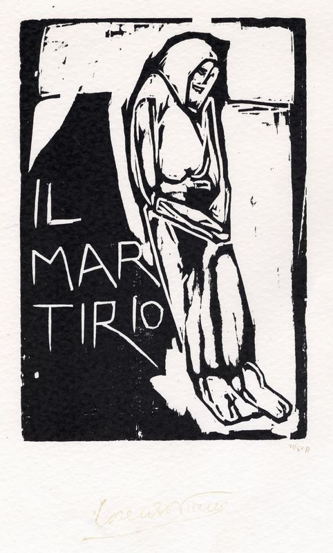 Xilografia. mm 287x195. Foglio: mm 497x345. Firma in basso al centro e controfirma stampigliata al verso. Numerazione a penna in basso a destra. Titolo in lastra. Es. 11/50 A.