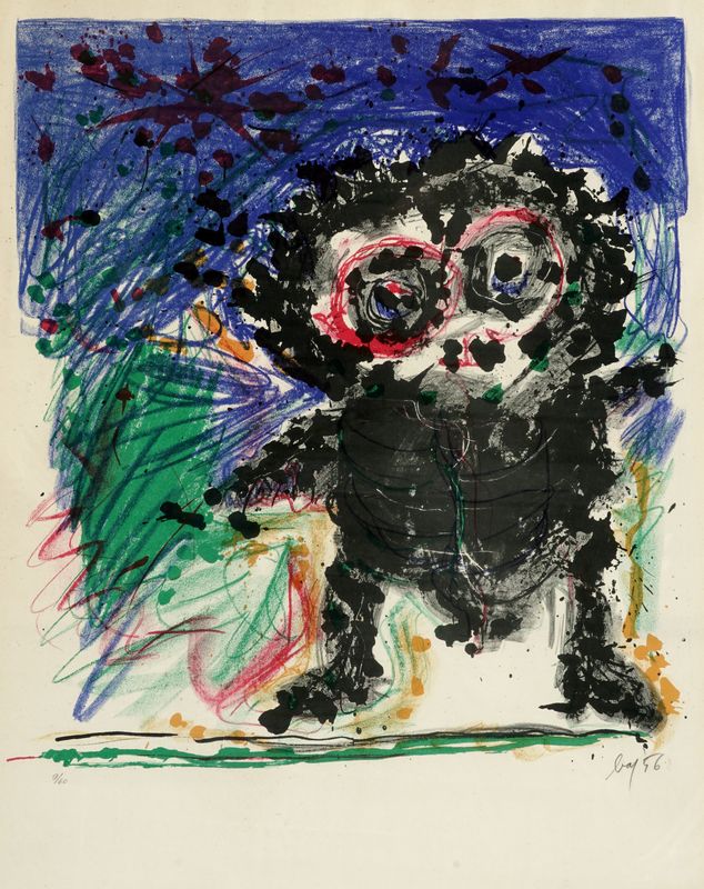 Litografia. mm 390x350. Foglio: mm 480x380 (visibili). Firma e data a matita in basso a destra e tiratura in basso a sinistra. Es. 9/60.