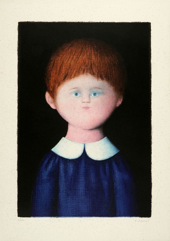 Scolaretto e Ritratto femminile. Litografie. mm 555/601x375/445. Fogli: mm 695x495. Firmate a matita in basso a destra e numerate in basso a sinistra. Lo Scolaretto presenta il timbro a secco de "Calcografico Studio". Es. 41/150 e 62/120.