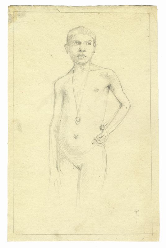 Matita su carta. mm 279x178. Monogrammato in basso a destra. Al verso studi di nudi. Pubblicato in: Bucarelli P. (con presentazione di), Mostra di disegni di Telemaco Signorini, 13 aprile-11 maggio 1969, Galleria Nazionale d'Arte Moderna di Roma, Valle Giulia, n. 450.