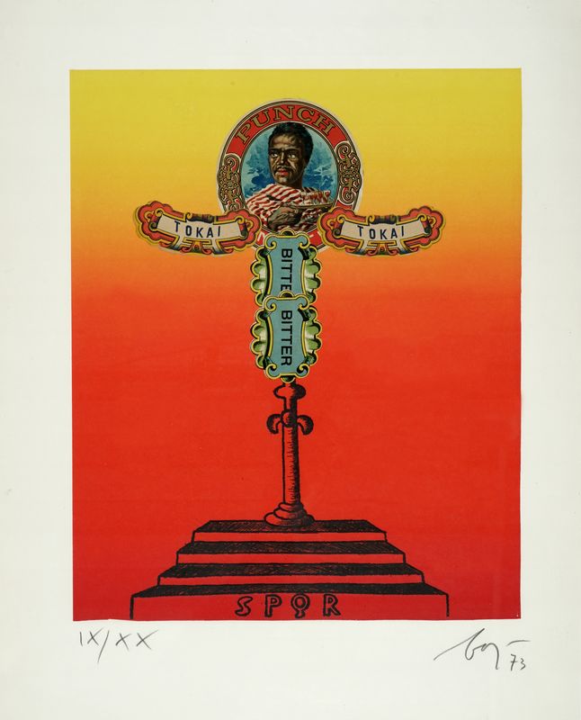 Serigrafia. mm 345x285. Foglio: mm 500x400. Firma e data a matita in basso a destra e tiratura a numeri romani in basso a sinistra. Es. IX/XX.