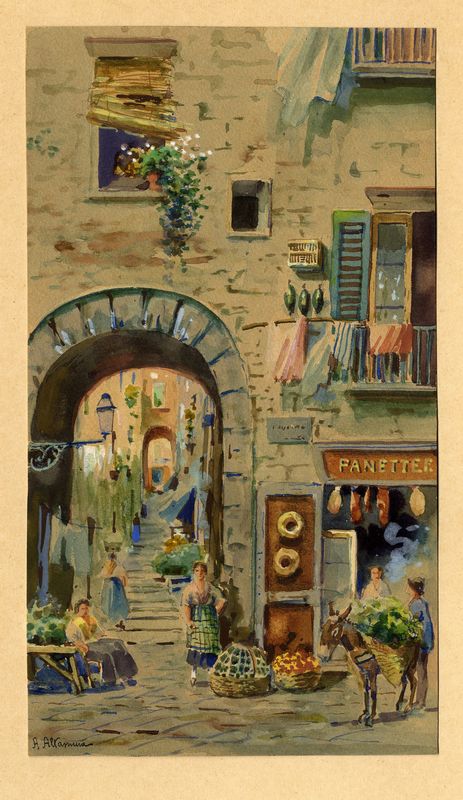 Acquerello. mm 210x116. Firmato a penna e inchiostro di china in basso a sinistra.
