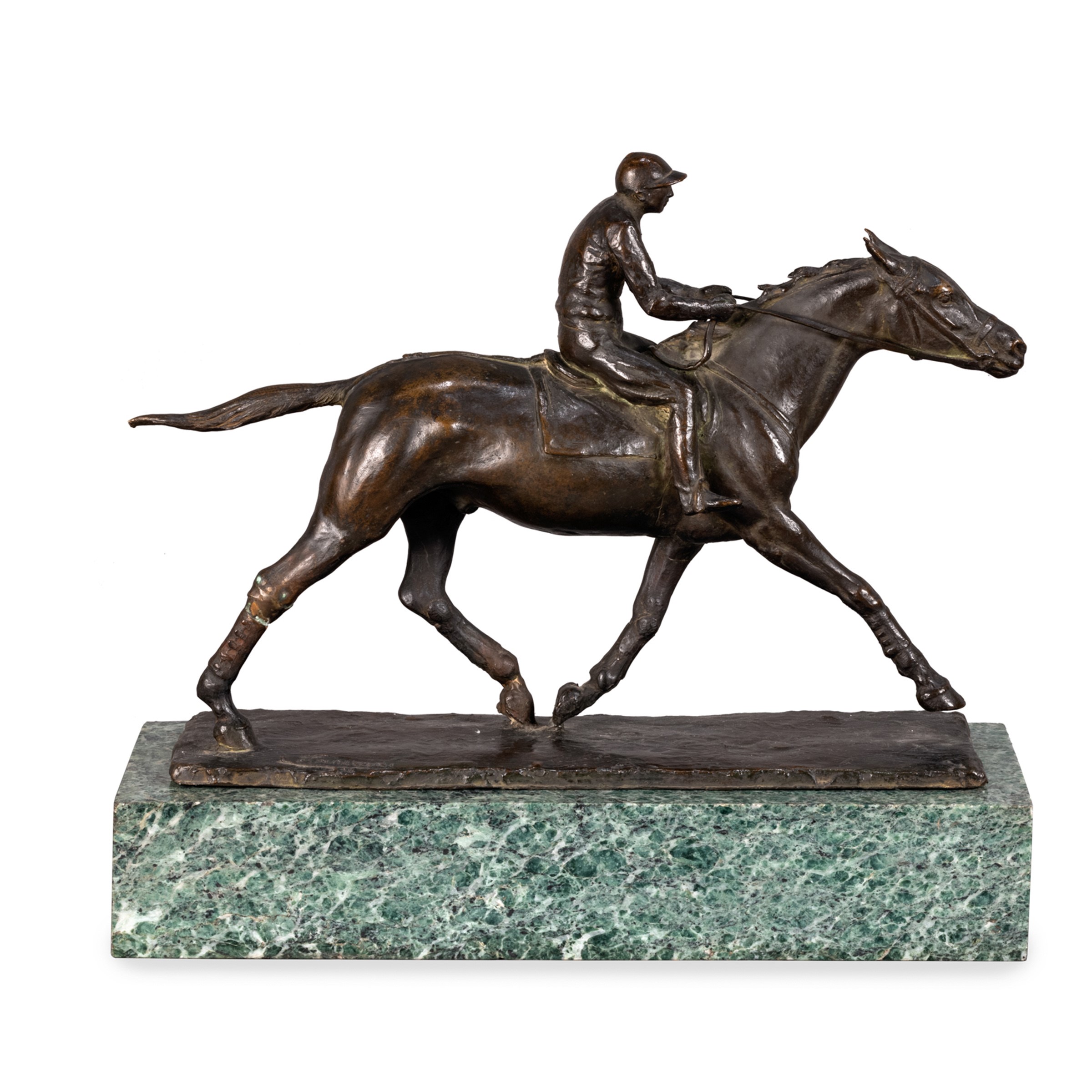 Torino 1864 -1934 Cavallo al galoppo, scultura in bronzo patinato, firmata, poggiante su base in marmo verde