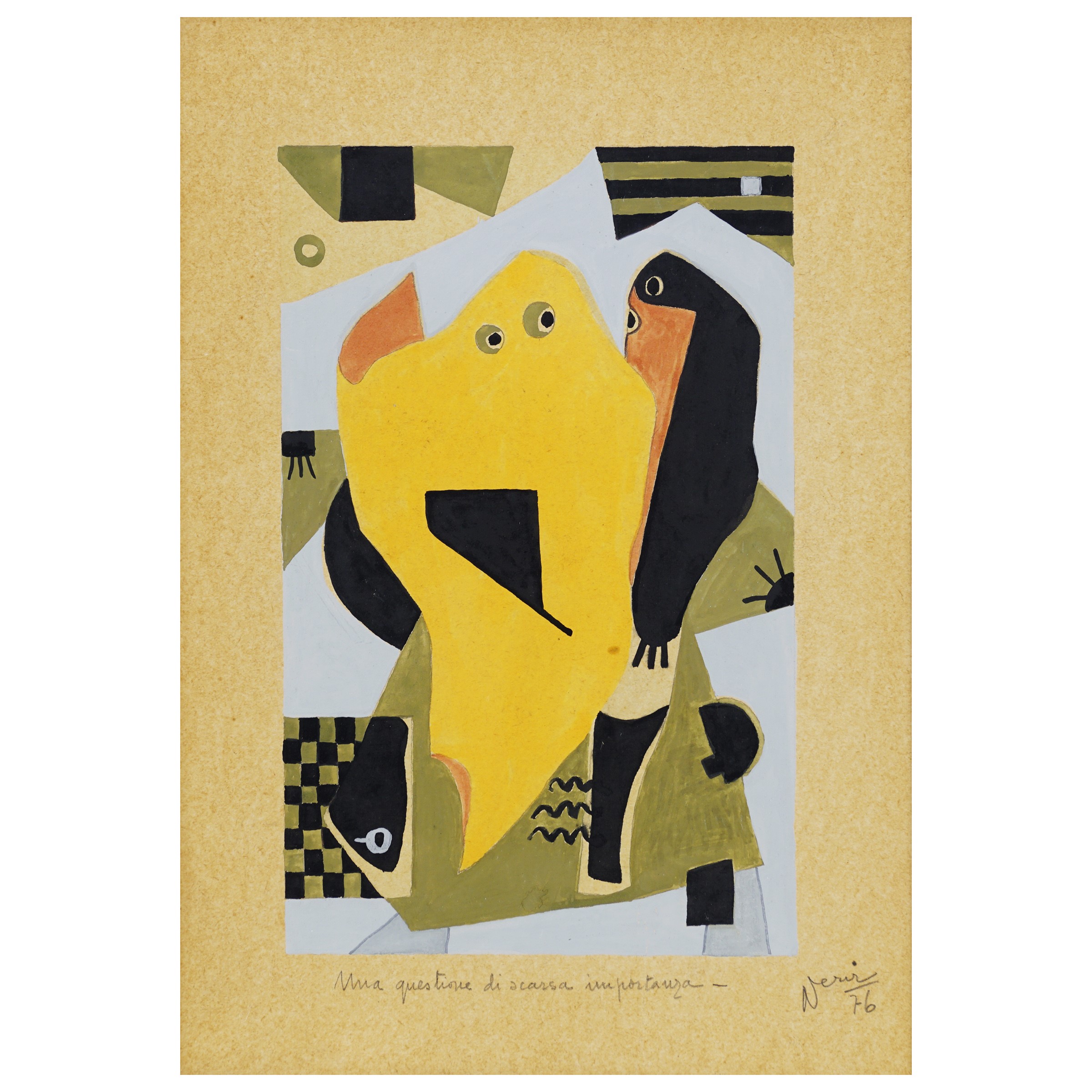 XX Sec. Una questione di scarsa importanza, 1976, tecnica mista su carta, firmata e datata in basso a destra