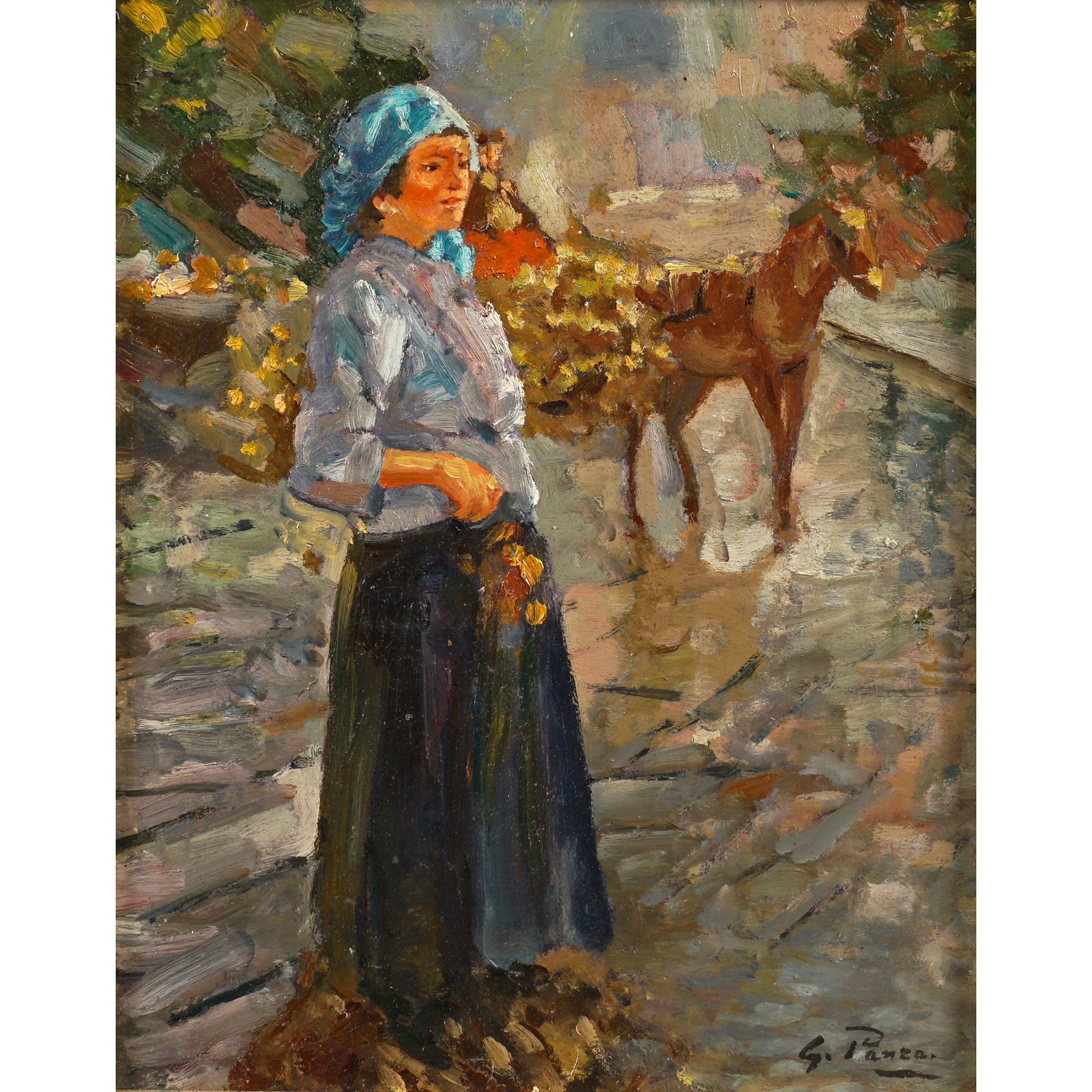 Miseno 1894 - Napoli 1989 Ritratto di popolana, olio su tavola, firmato in basso a destra
