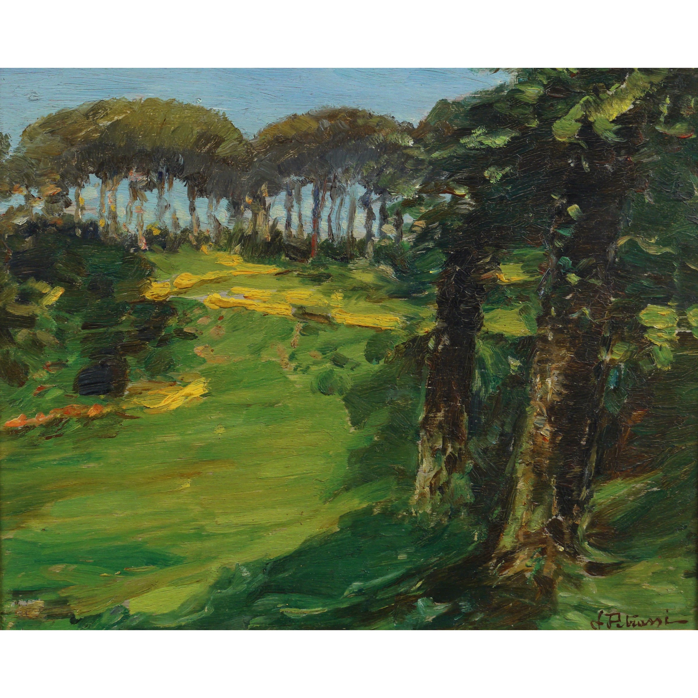 Zagarolo 1868 - Roma 1948 Bosco, olio su tela, firmato in basso a destra