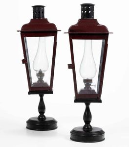Coppia di lanterne. Legno e metallo dipinto. XIX-XX secolo