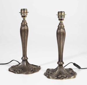Coppia di vetrate con struttura in legno laccato e vetri dipinti a motivi floreali [..]