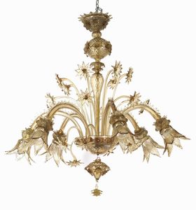 Lampadario in vetri di Murano policromi a otto bracci. XX secolo