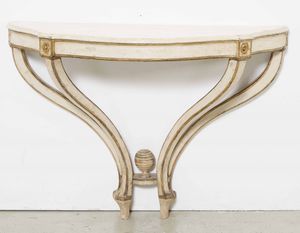 Insieme di consolle con specchiera e coppia di mensoline in legno intagliato e d [..]
