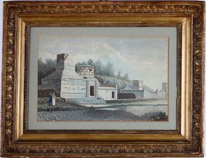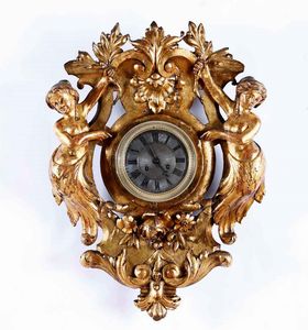 Pendola da muro con cassa in legno intagliato e dorato. XIX secolo