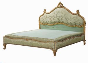 Testata da letto con struttura in legno dorato e rivestimento in broccato verde