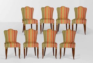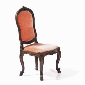 Lotto di sette poltrone e una sedia in legno intagliato. Genova XVIII secolo