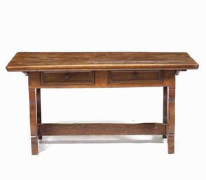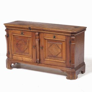 Madia in legno tenero scurito a due ante e piano apribile. Italia settentrionale, [..]