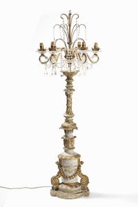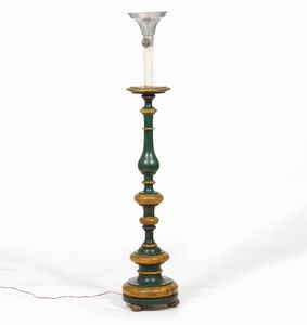 Grande torciera in legno tornito e dipinto. XIX secolo