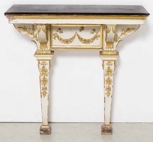 Consolle Luigi XVI in legno intagliato, laccato e dorato. XVIII-XIX secolo