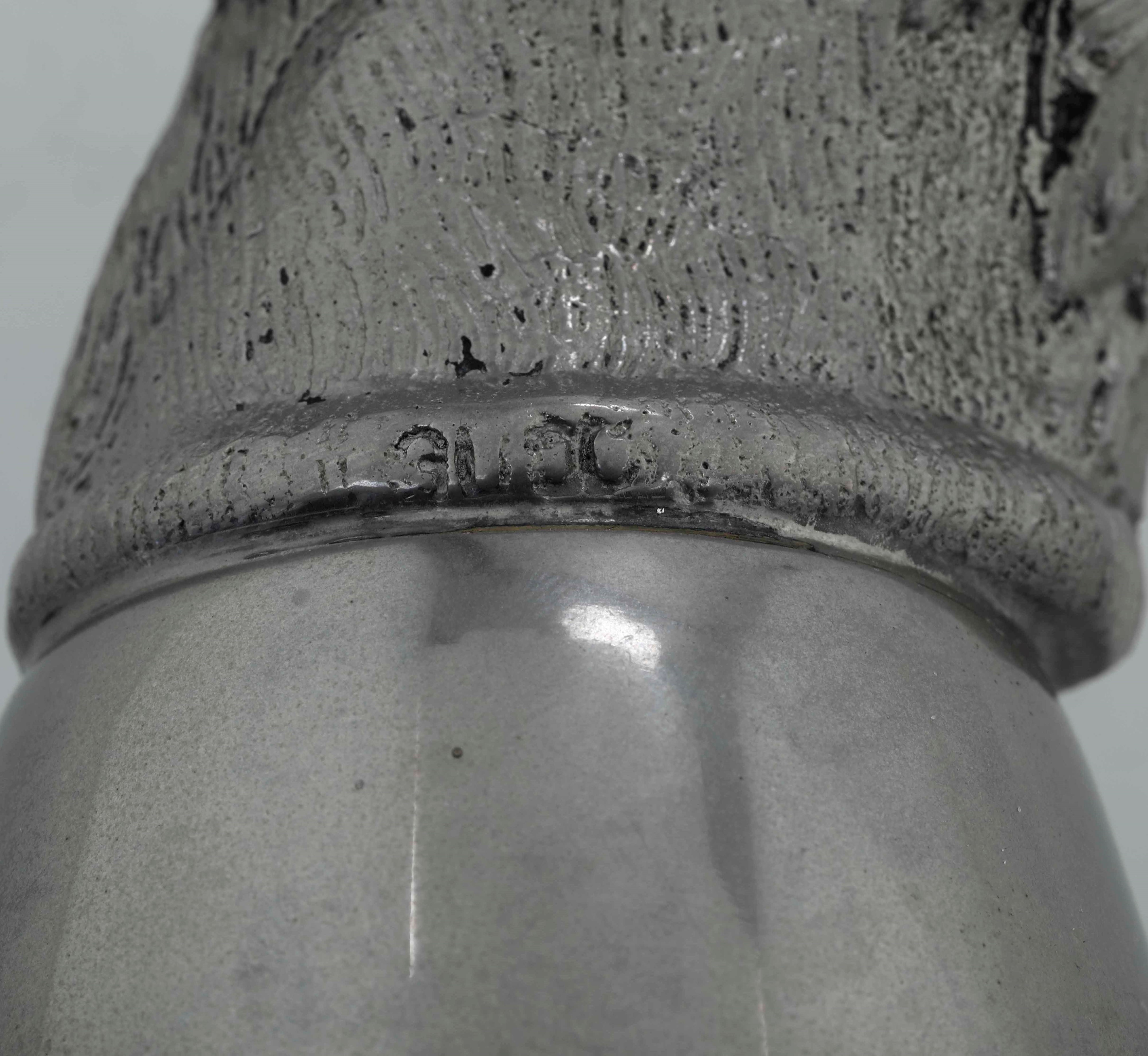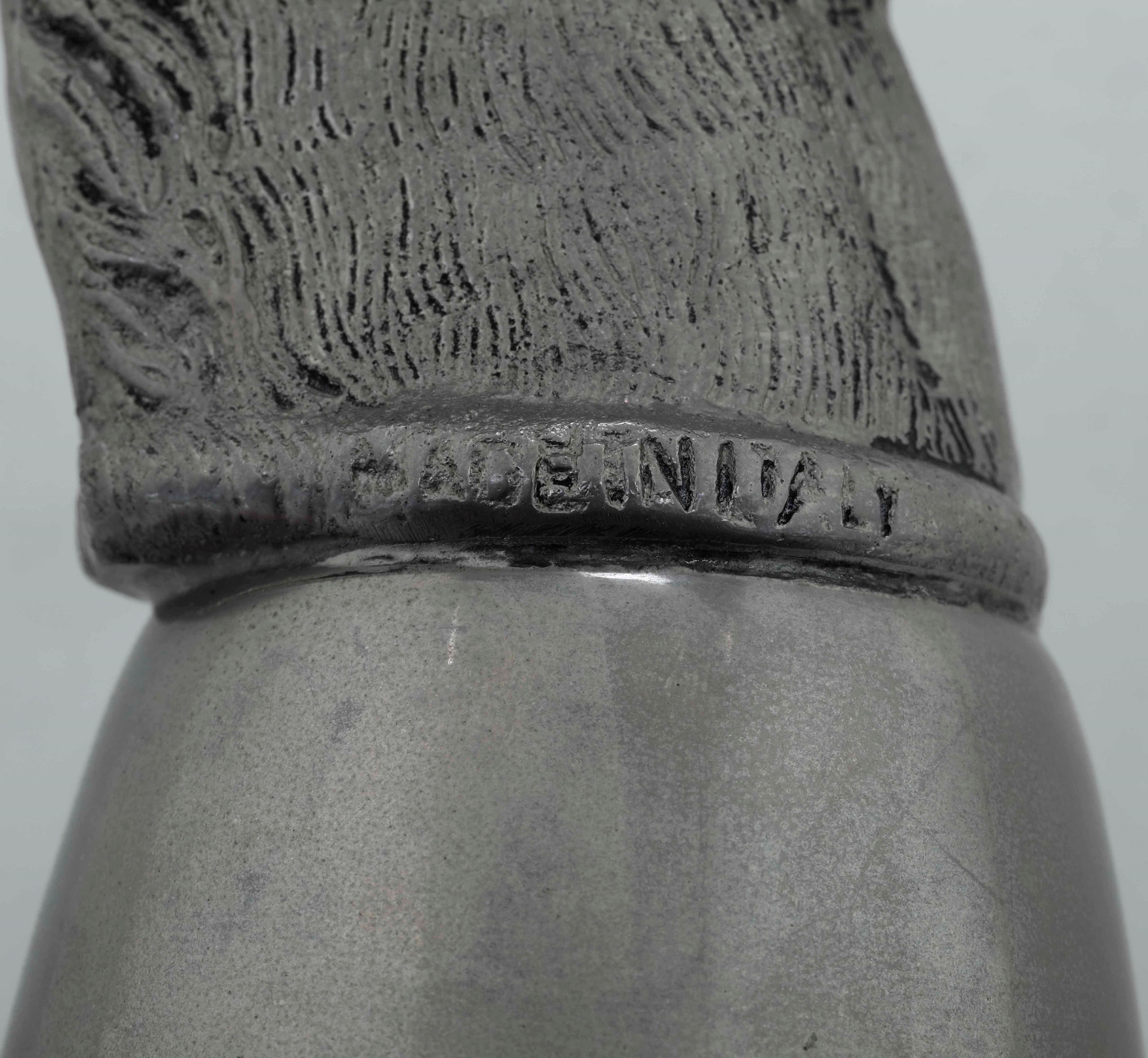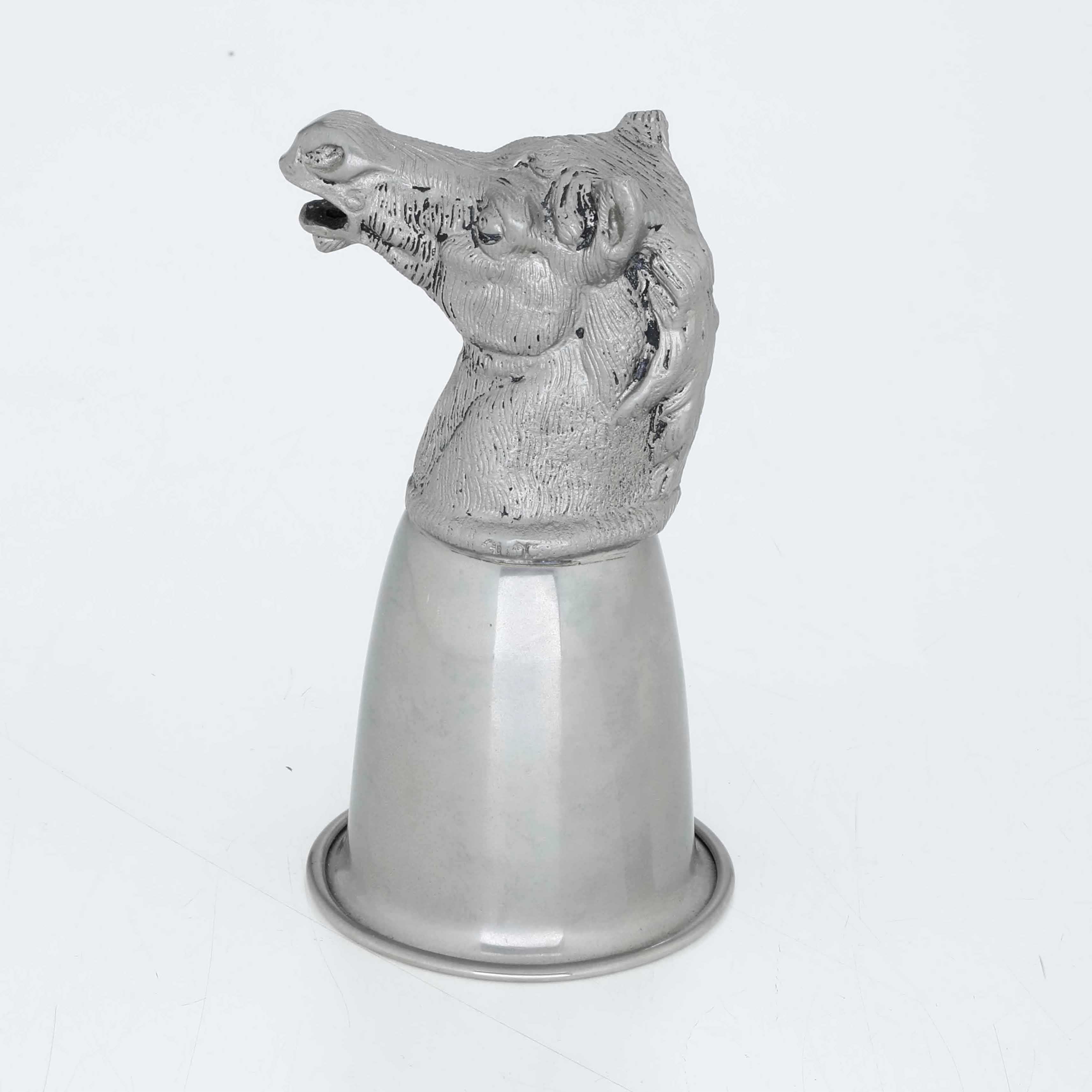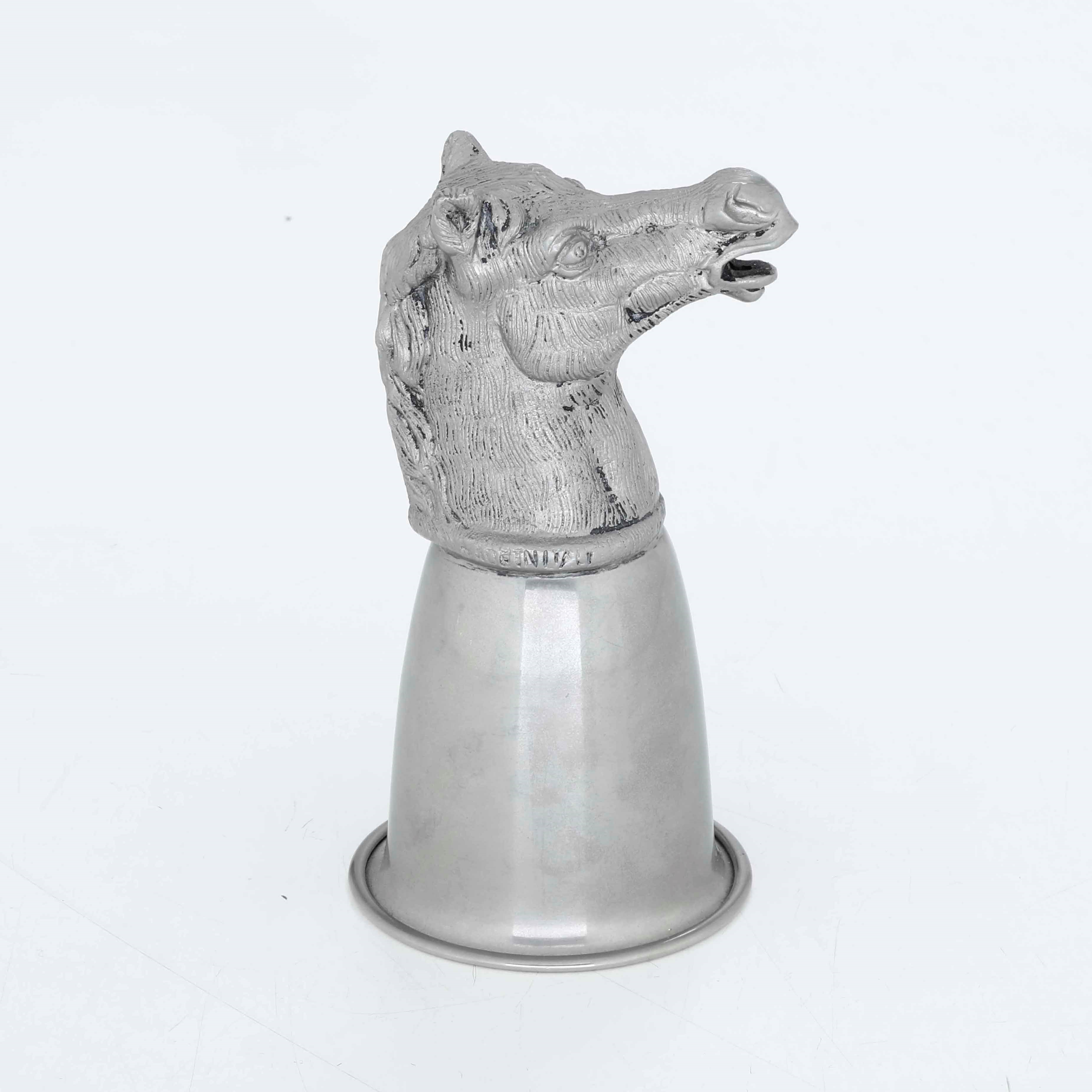 Bicchiere in metallo con testa di cavallo a firma Gucci. Italia XX secolo