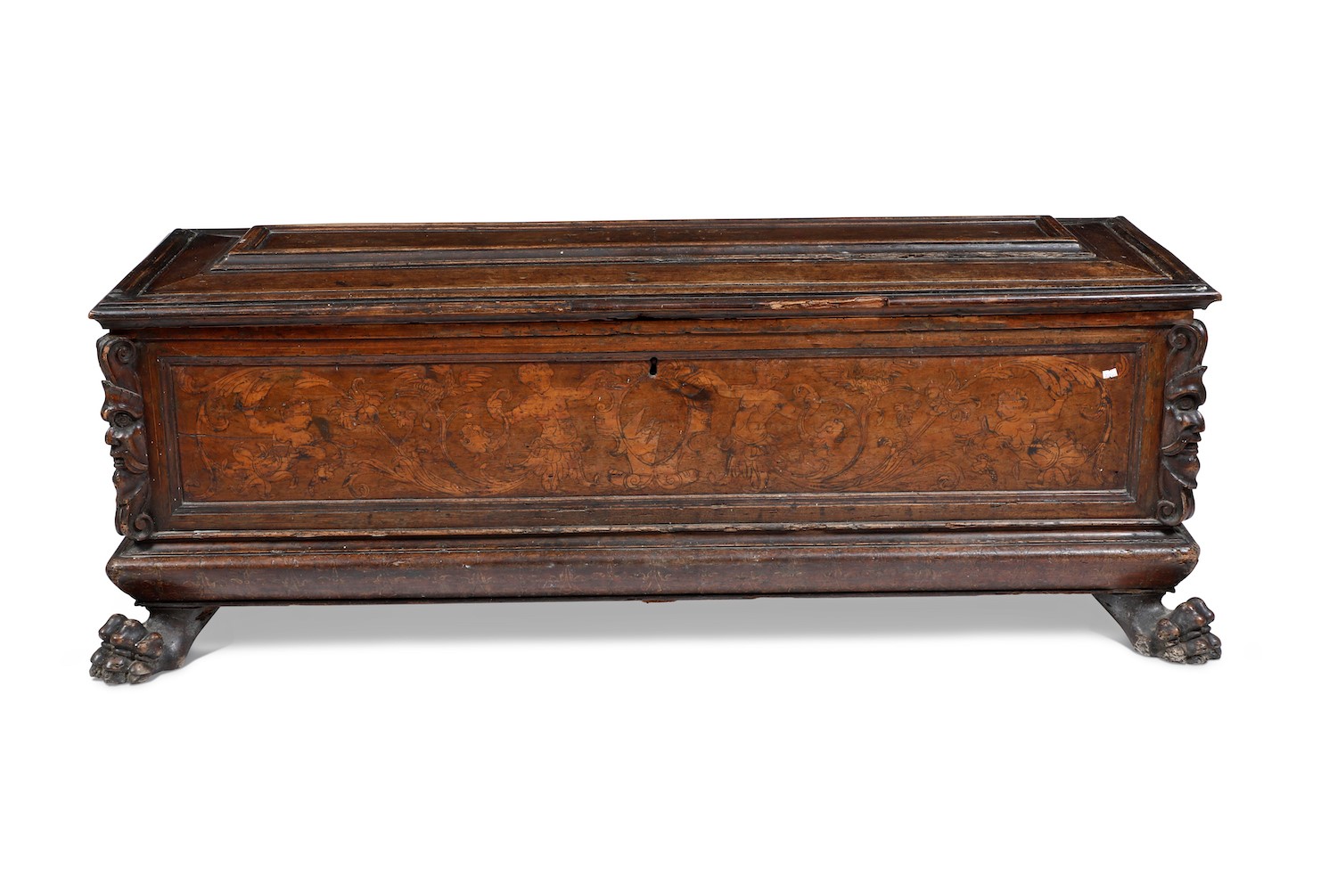 Cassapanca in legno intagliato. XIX secolo