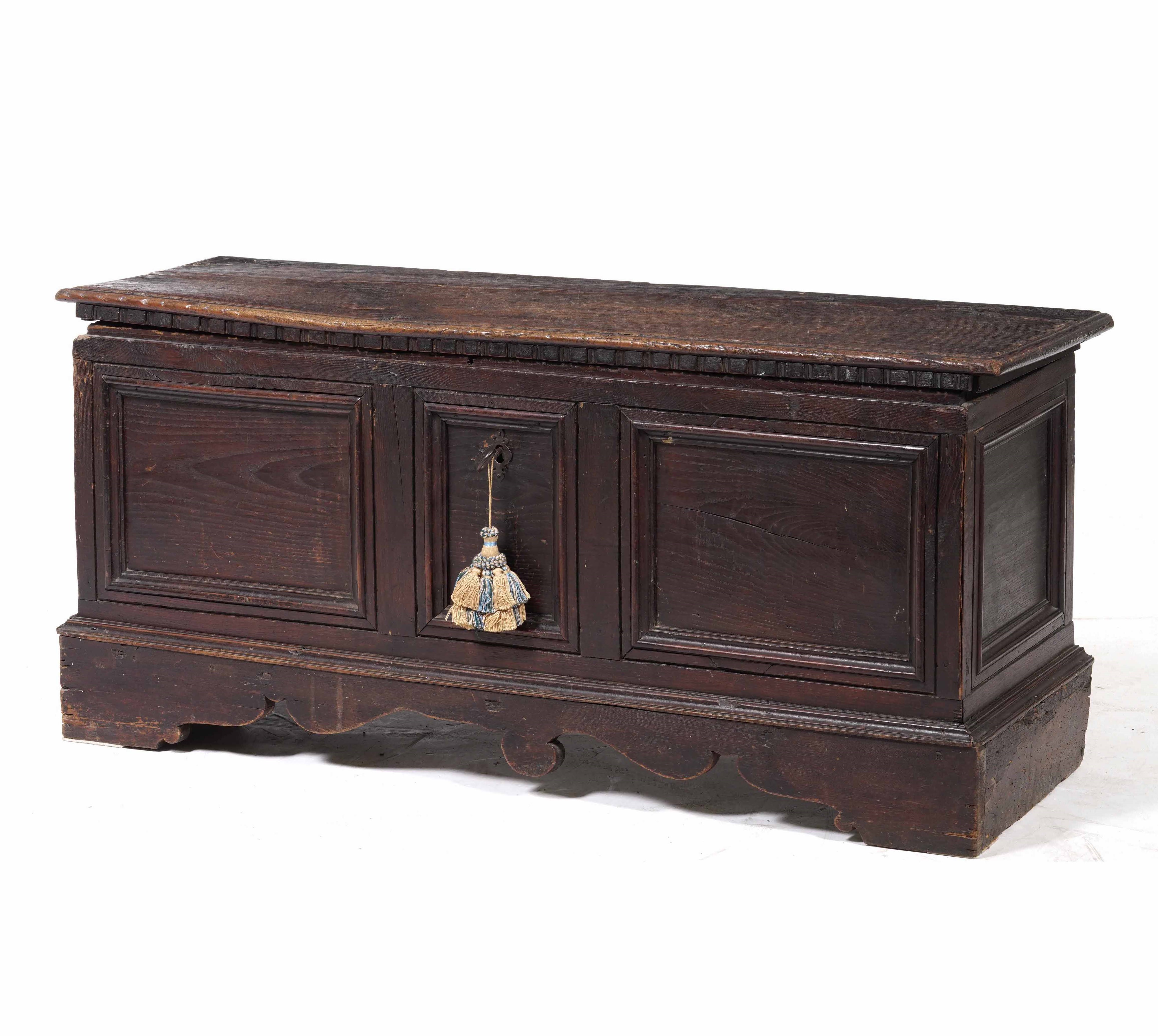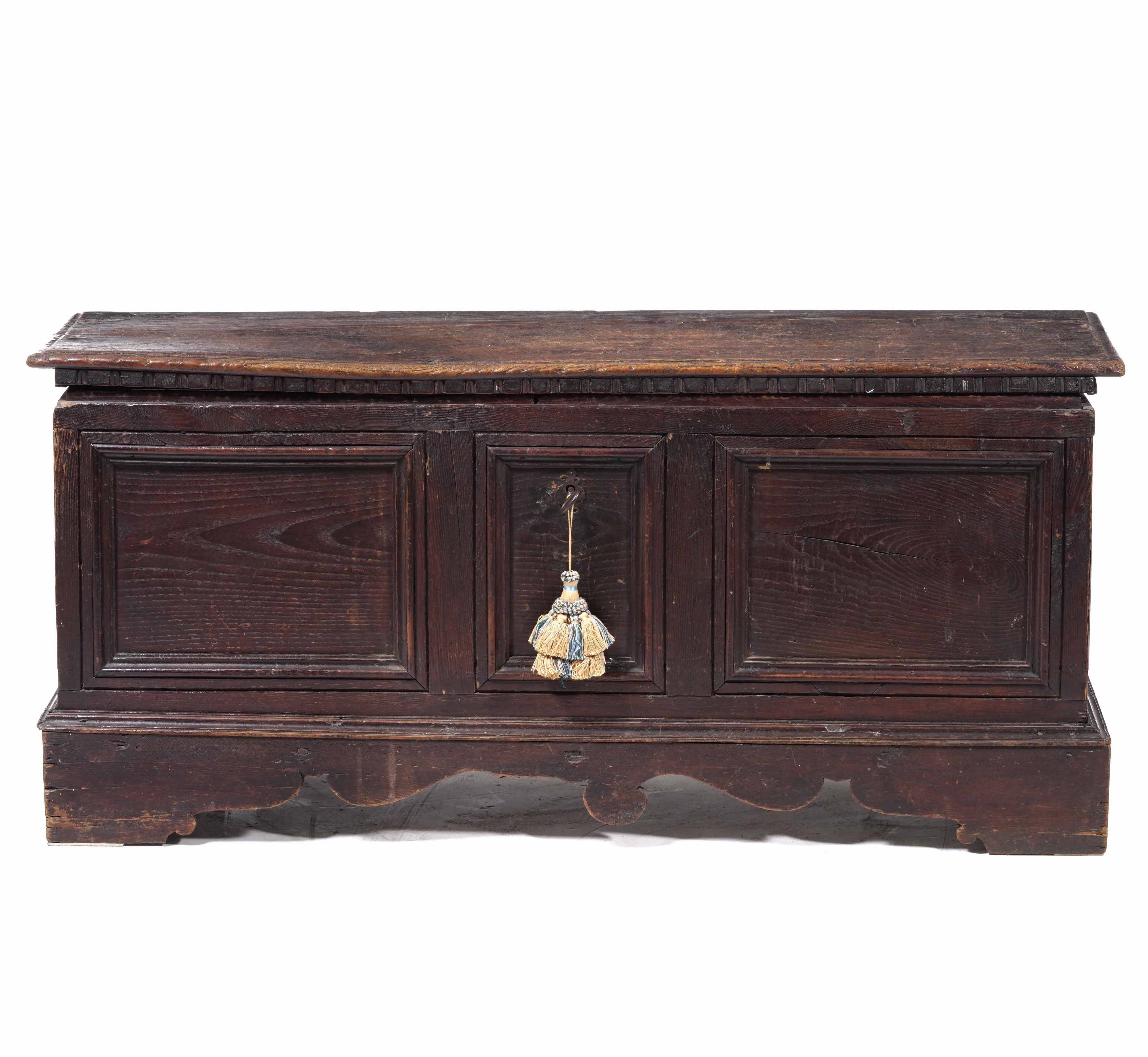 Cassapanca in noce patinato. Italia centrale, XVIII secolo