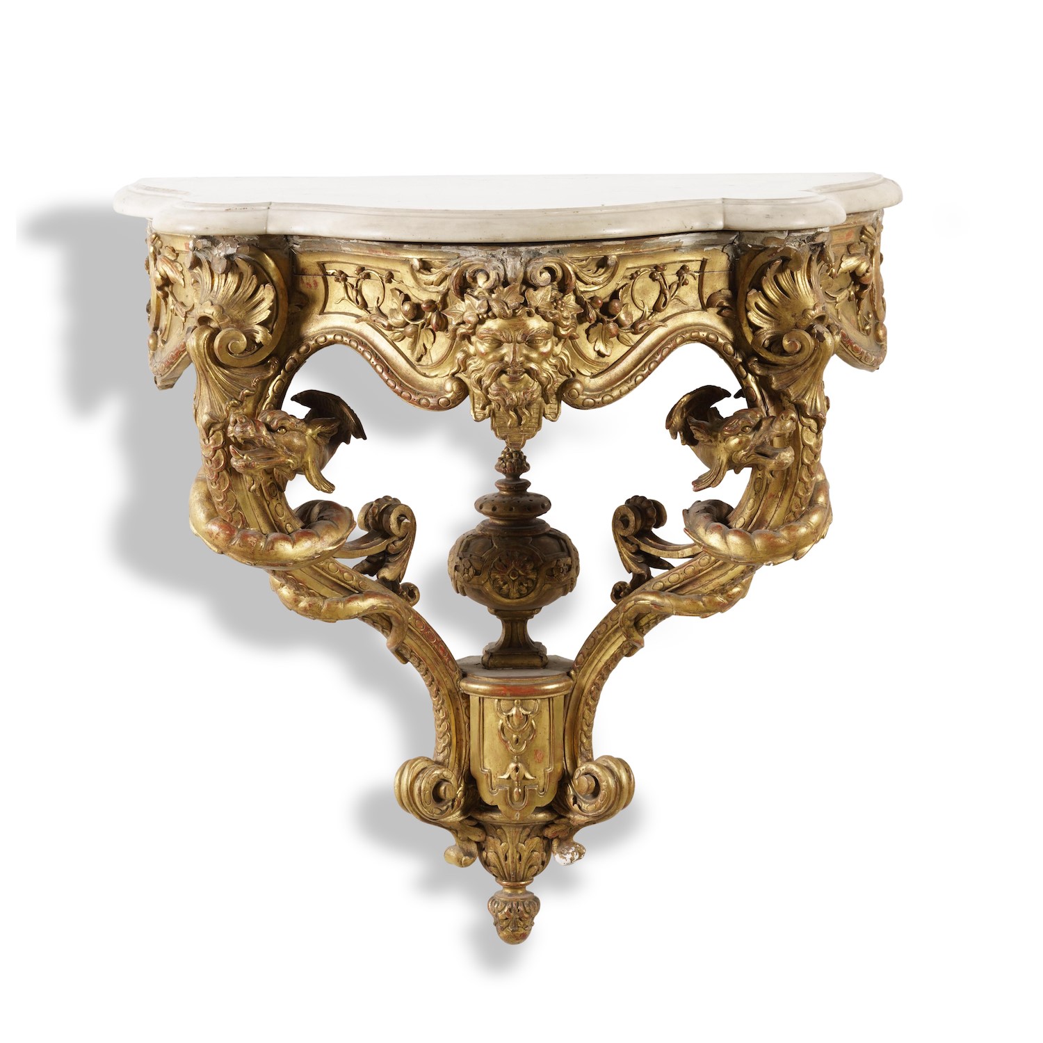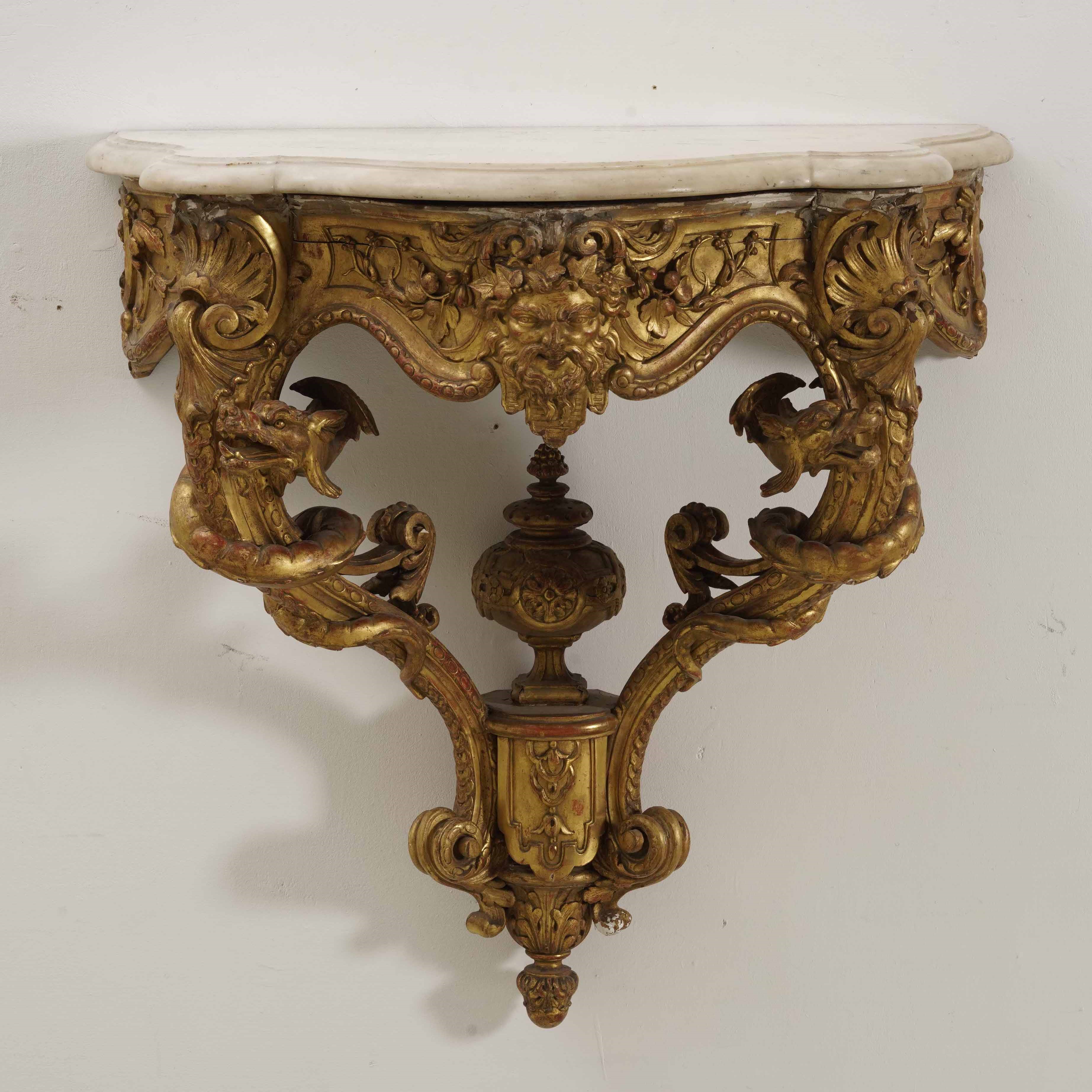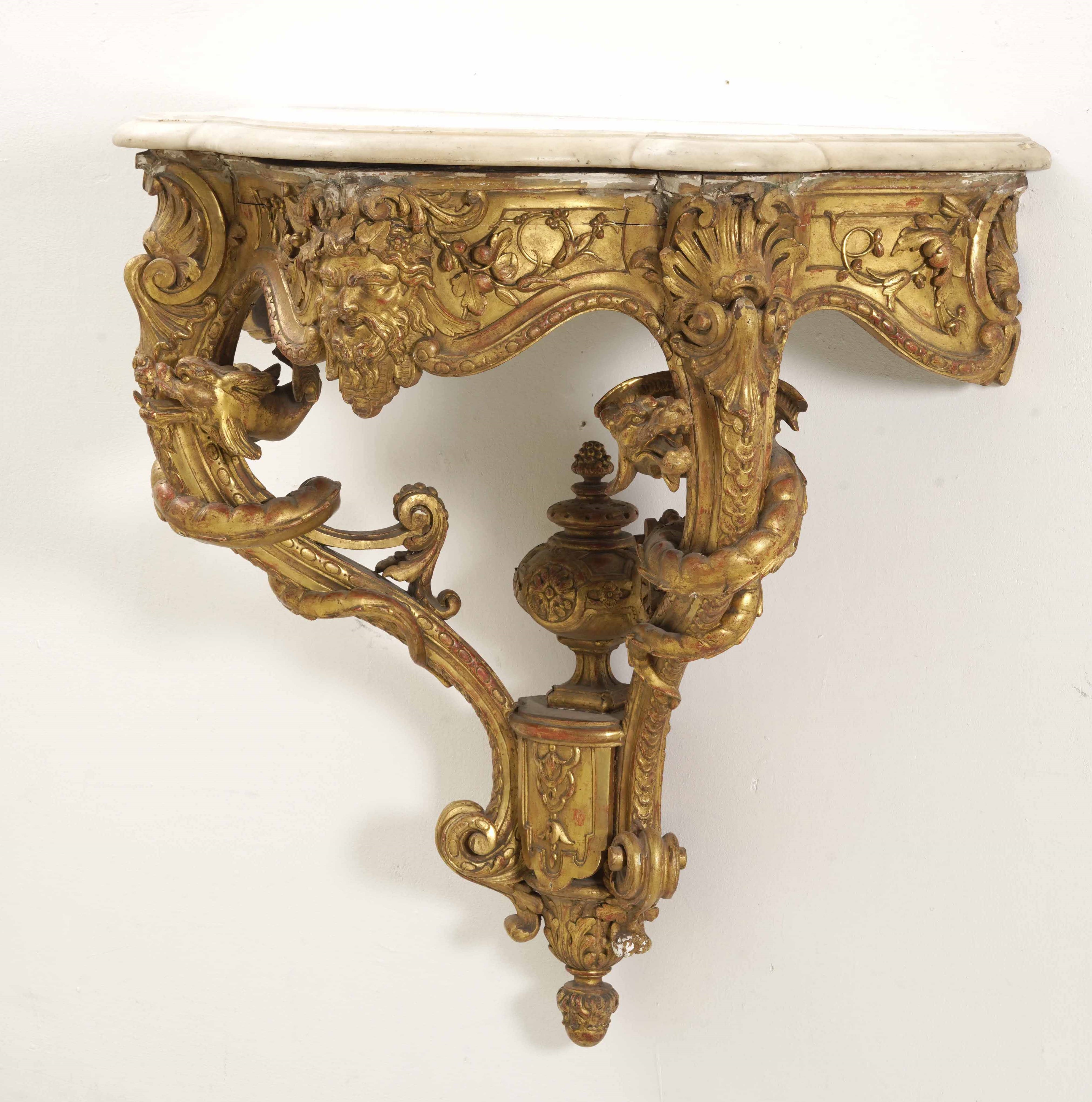 Consolle a goccia in legno intagliato e dorato. Francia XVIII secolo