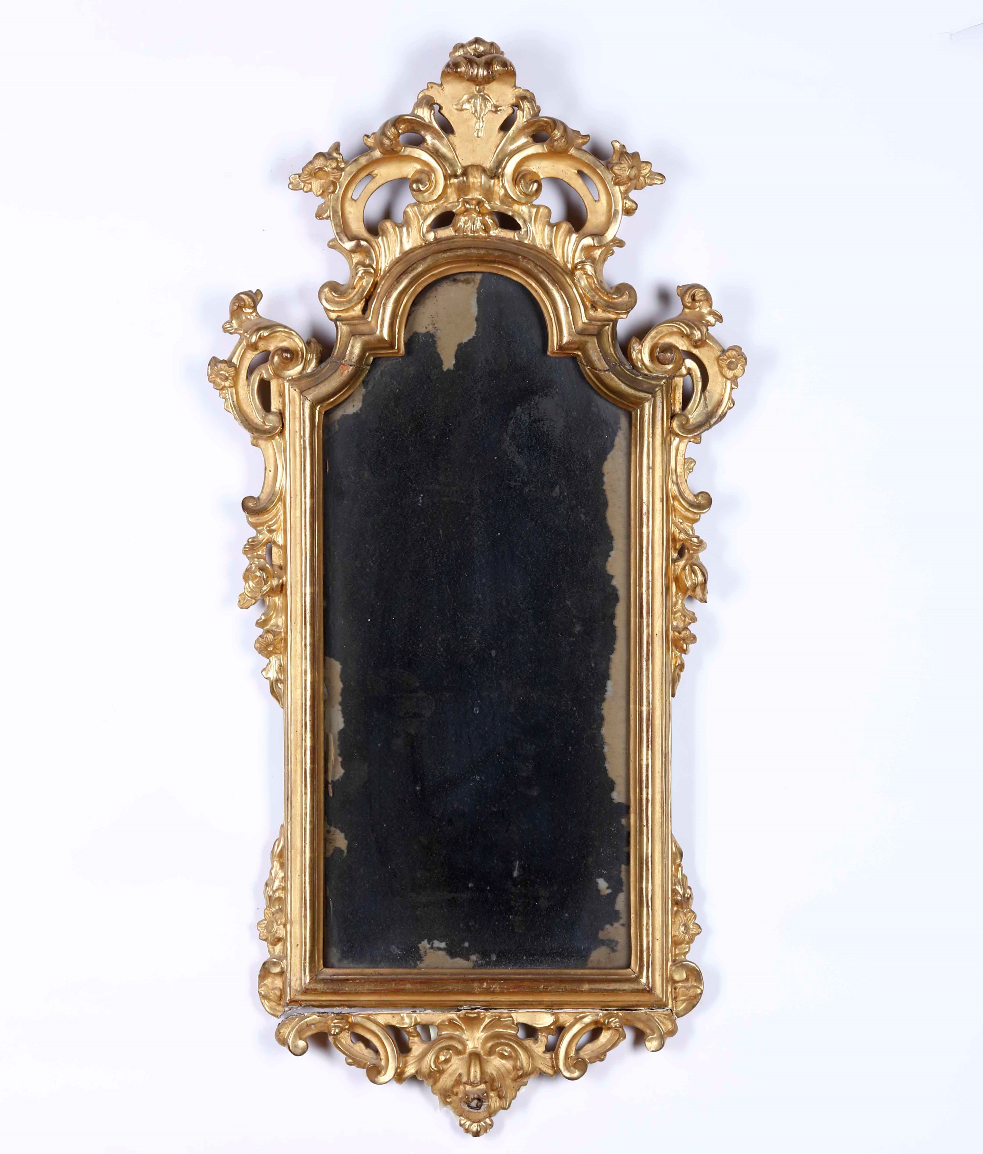 Coppia di specchiere in legno intagliato e dorato. XVIII secolo