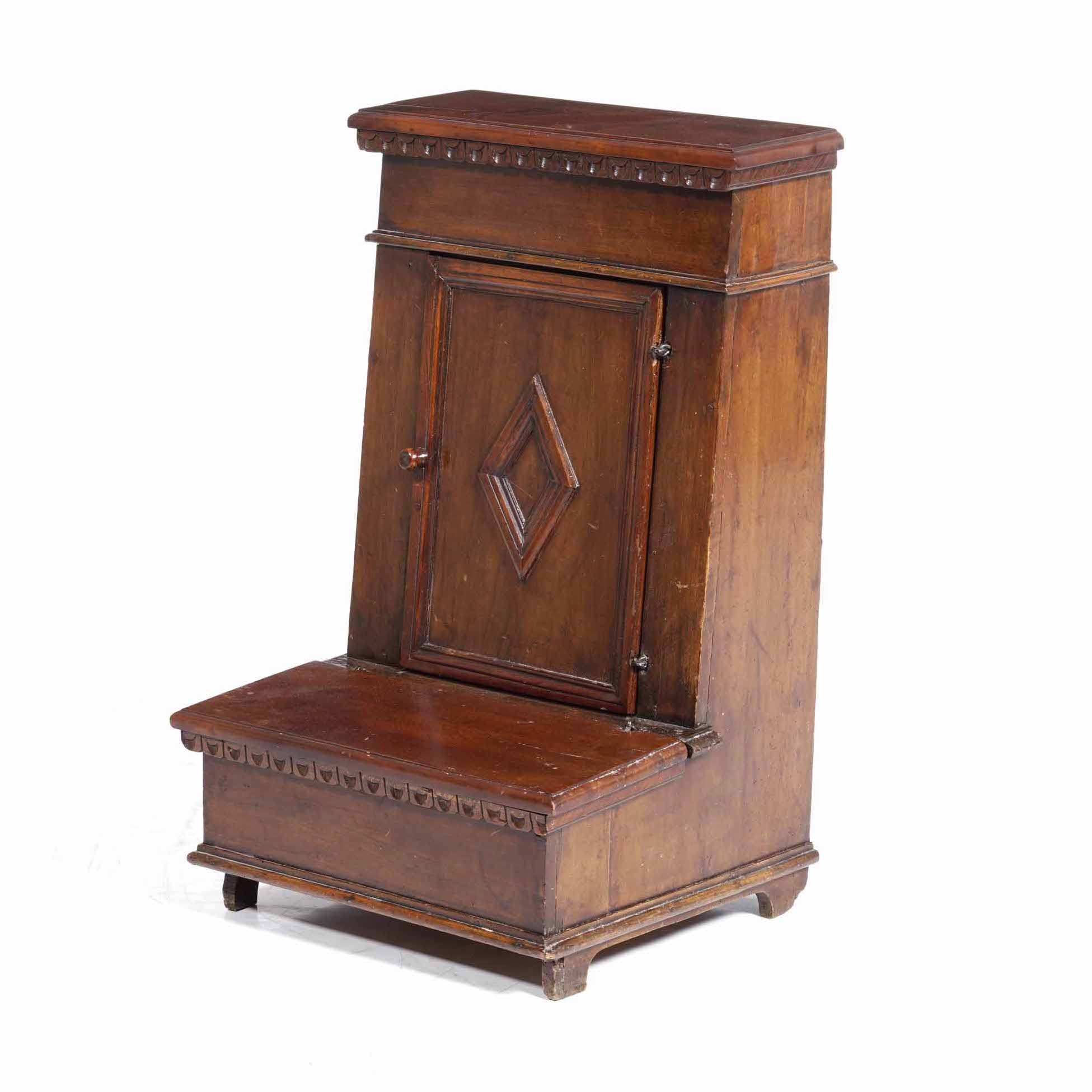 Inginocchiatoio in noce con anta centrata da losanga. Piemonte, Secolo XVIII