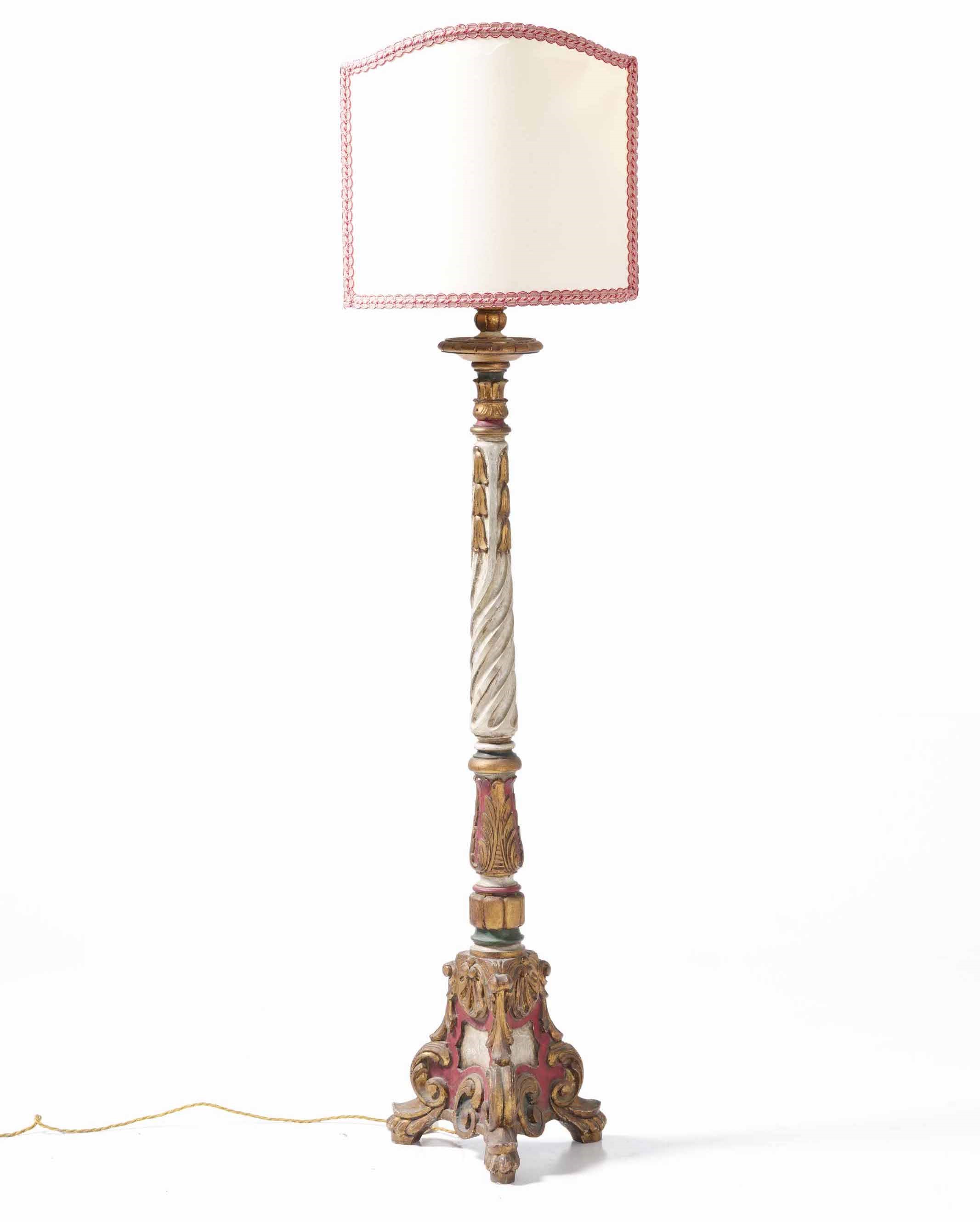 Lampada da terra in legno intagliato e dipinto. XVIII-XIX secolo