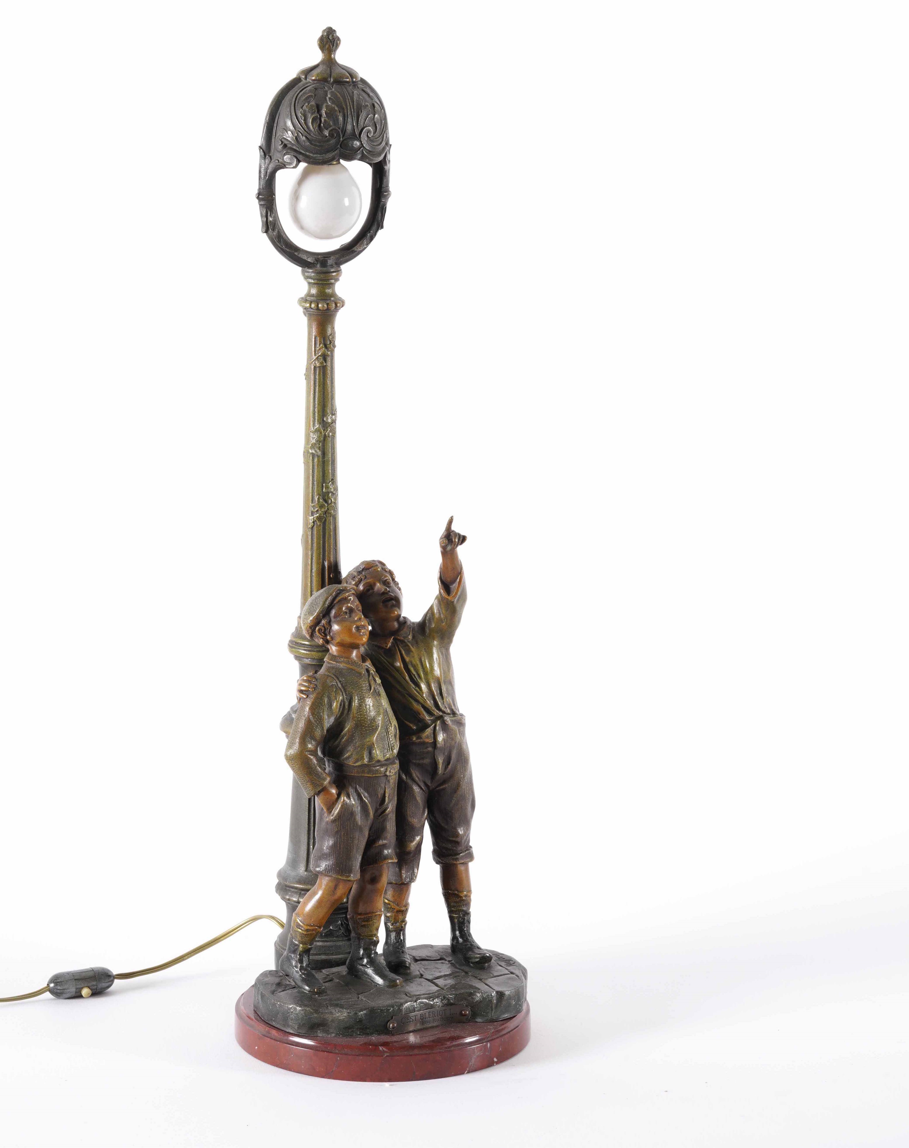 Lampada in bronzo dipinto e patinato. XX secolo