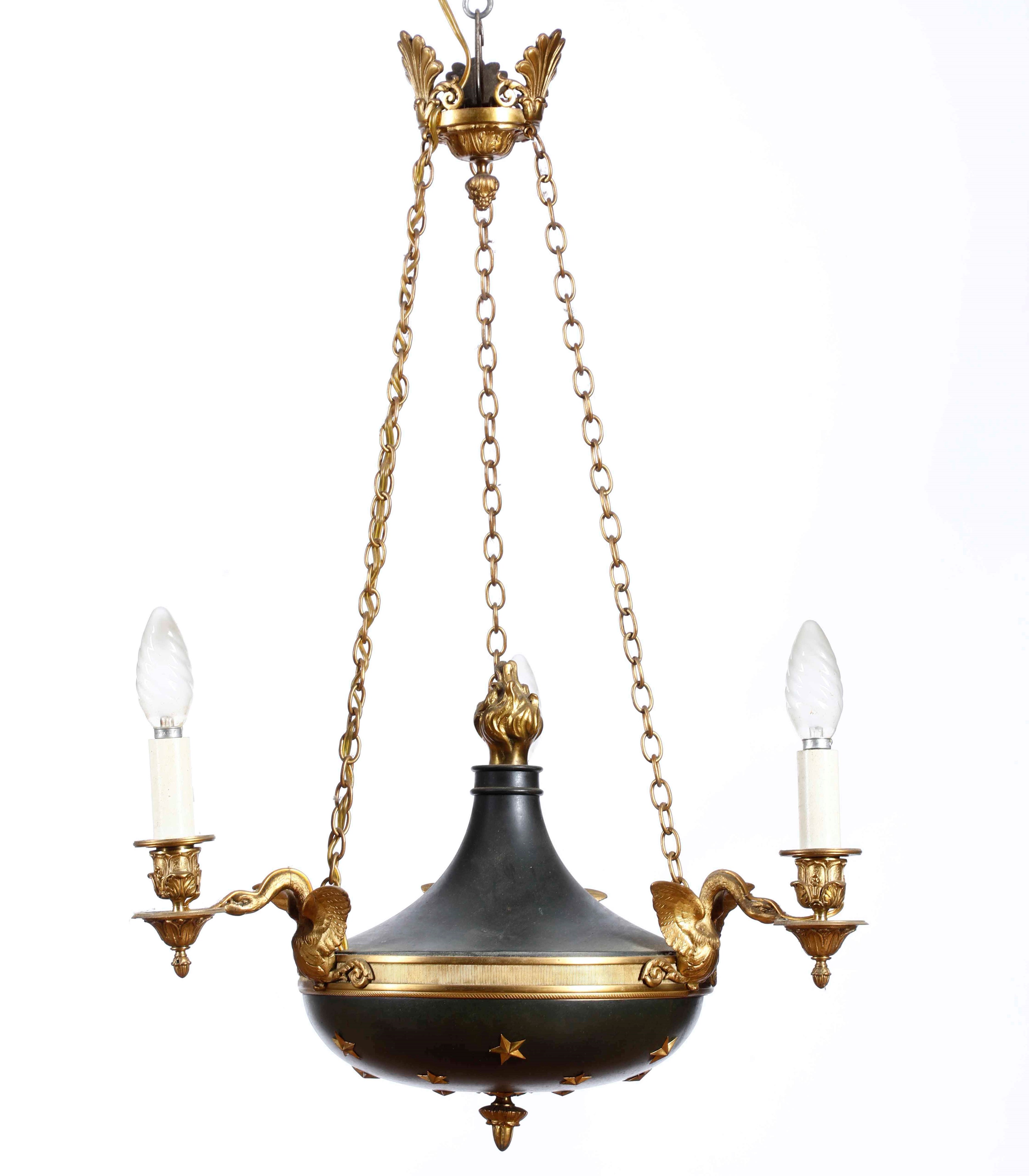 Lampadario in bronzo dorato e patinato. XIX-XX secolo