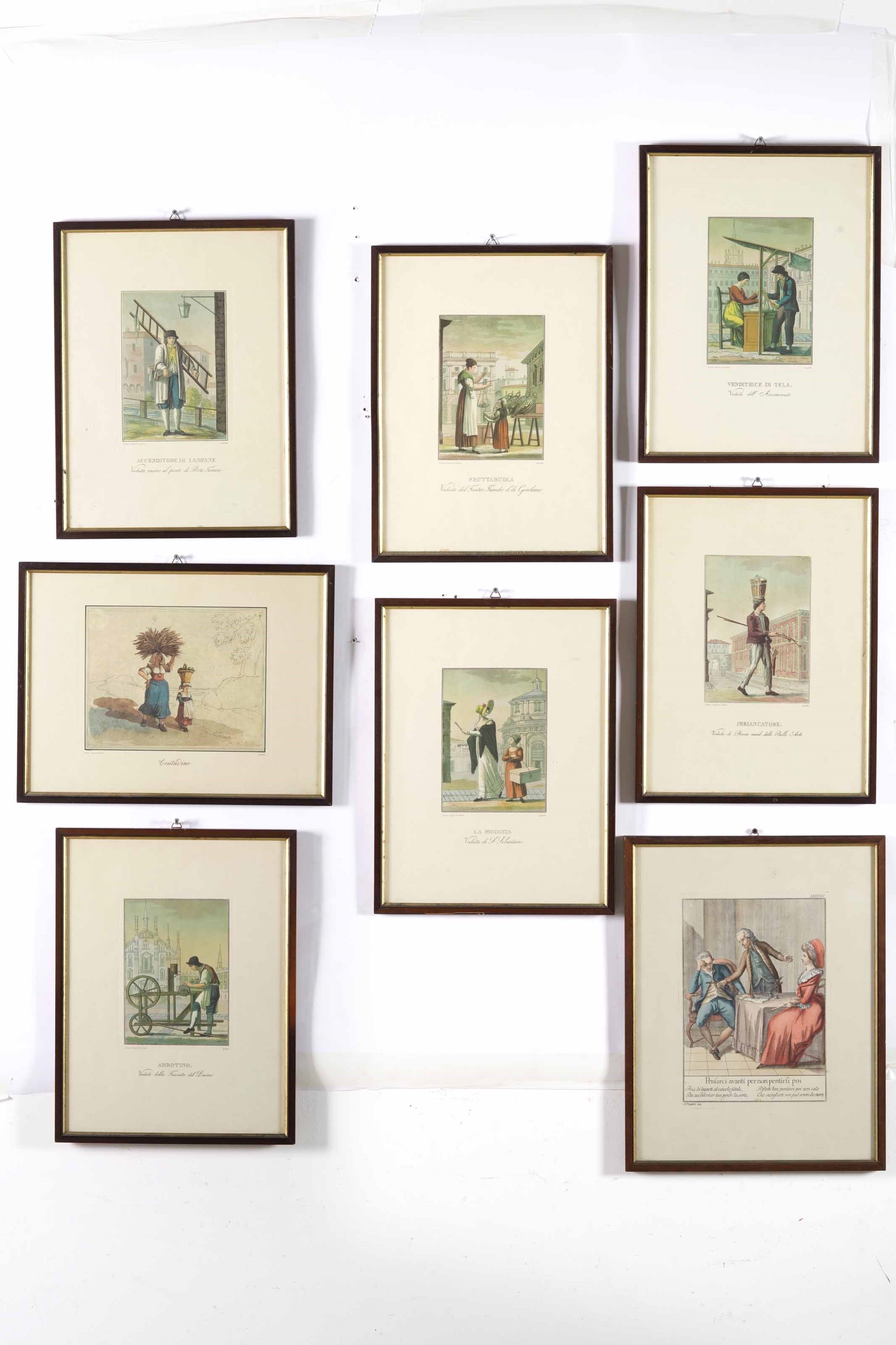 Lotto di 8 stampe raffiguranti mestieri