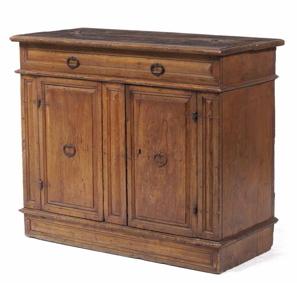 Madia in legno tenero scurito a due ante e piano apribile. Italia settentrionale, [..]