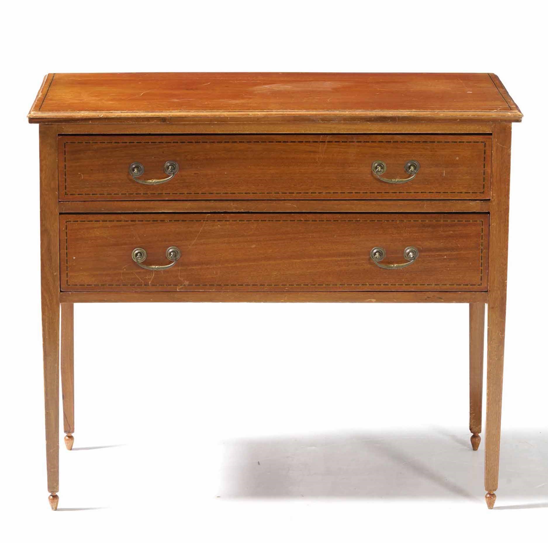 Mobile a due cassetti lastronato e filettato. XIX-XX secolo