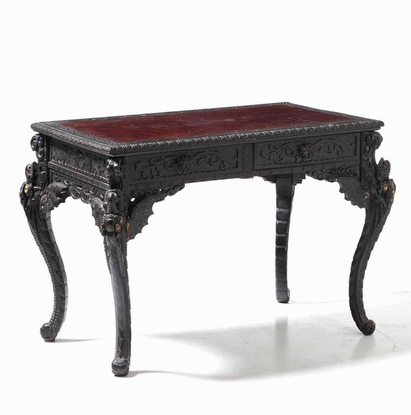 Scrivania in legno intagliato ed ebanizzato. XX secolo