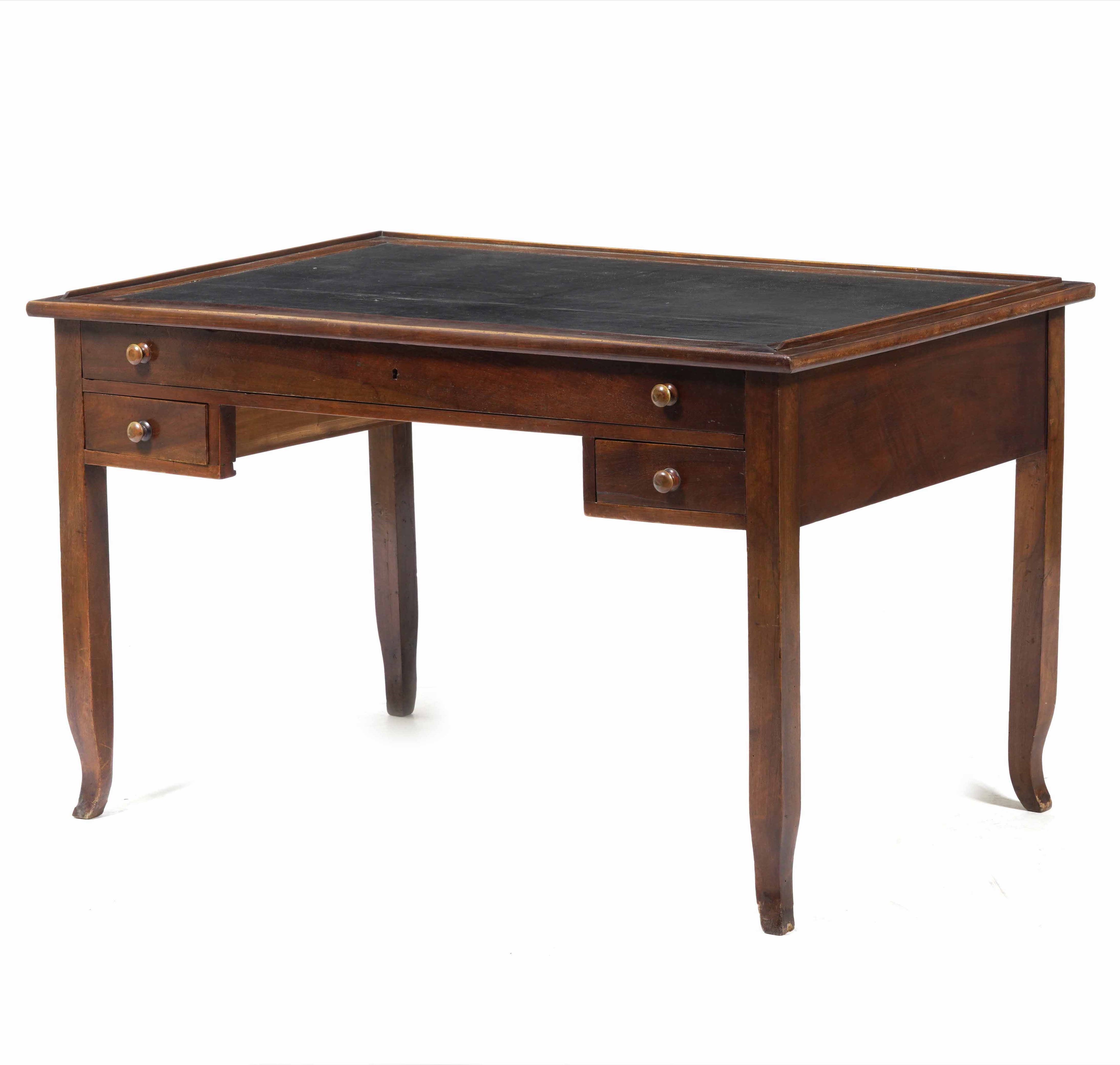 Scrivania in noce a tre cassetti. Fine XIX, inizio XX secolo