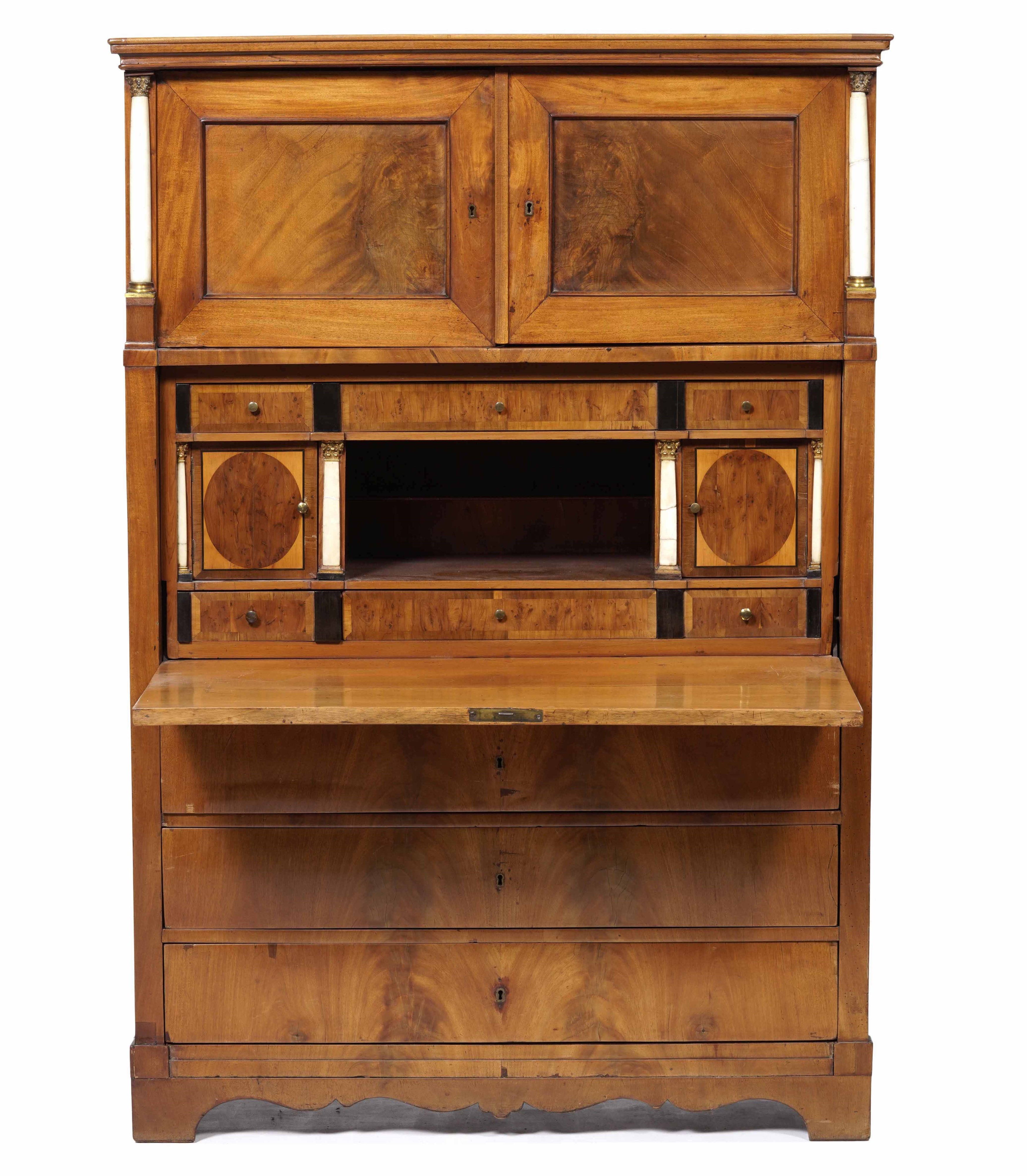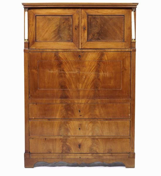 Secretaire in legno con colonnine in marmo. XIX secolo