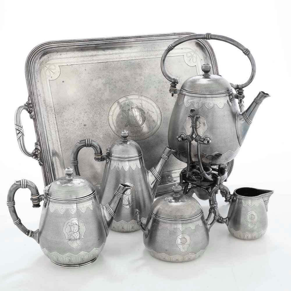 Servizio da tè Christofle composto da quattro pezzi più Samovar e vassoio