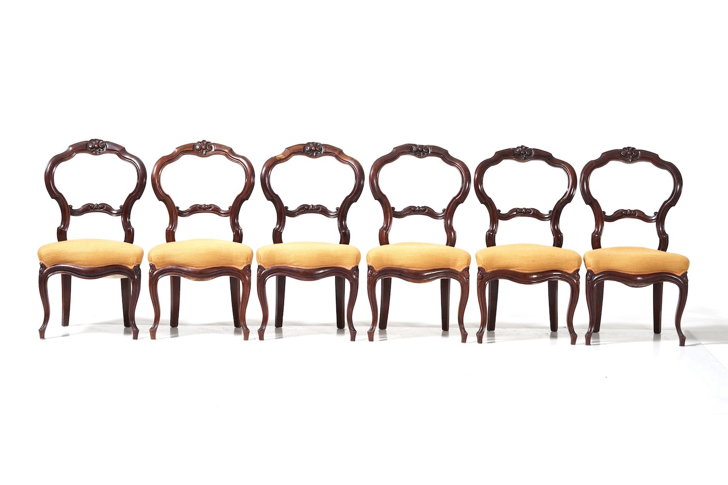 Tavolo e sei sedie in legno intagliato. XIX secolo