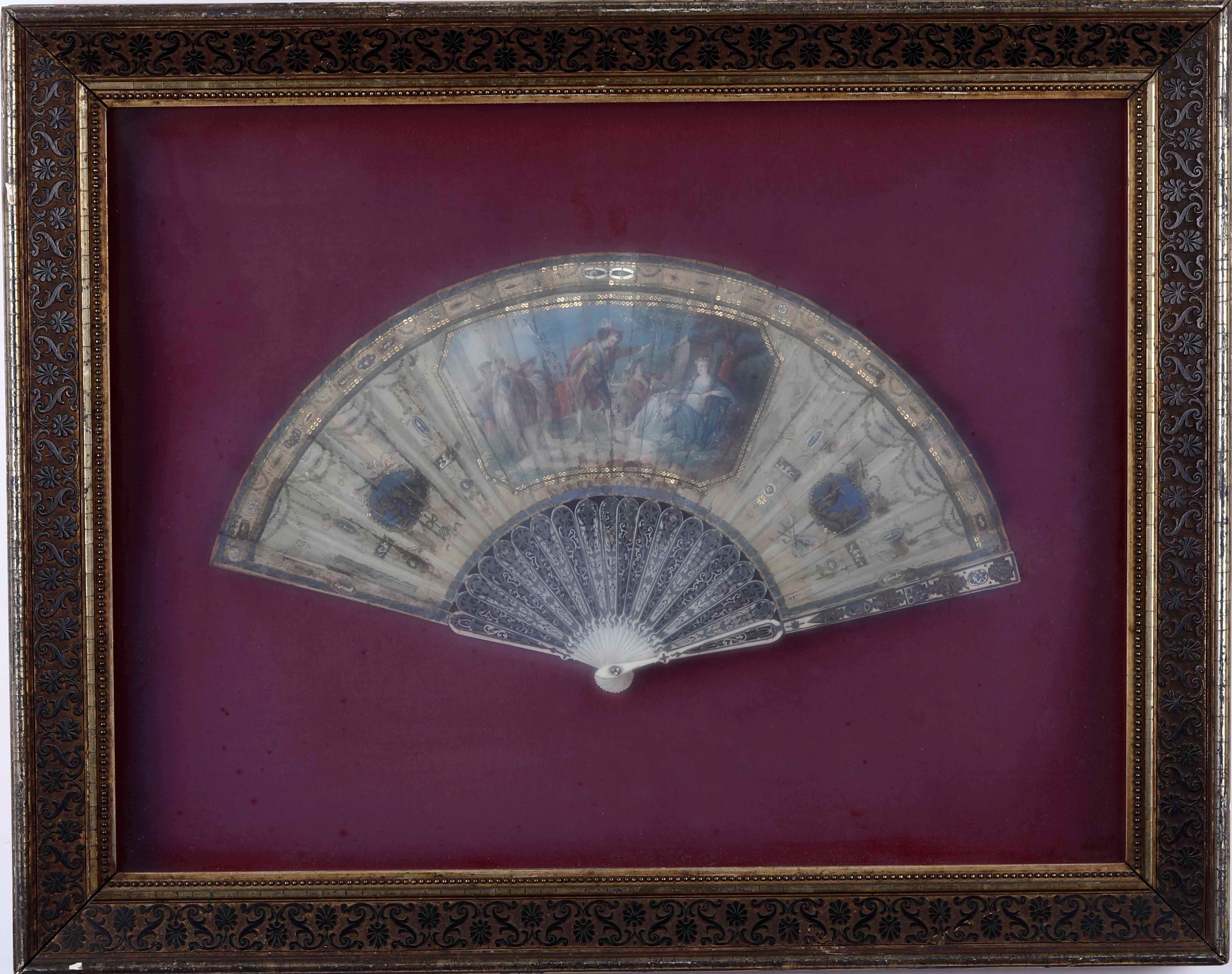 Ventaglio con stecche in madreperla dipinto con scena galante, Francia XIX secol [..]